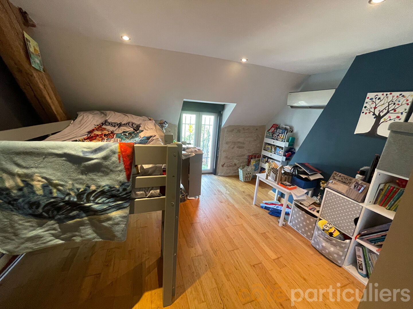 Votre agence Côté Particuliers vous présente cette charmante maison atypique en pierre entièrement rénovée à la campagne. Elle se compose d'une pièce de vie lumineuse regroupant salon et séjour avec insert , d'une cuisine aménagée et équipée, avec cellier, buanderie, de deux chambres ainsi que d'une salle d'eau et WC. A l'étage, vous trouverez une mezzanine pouvant faire office d'espace jeux, deux chambres supplémentaires, un bureau, une salle de bain et un WC. La maison dispose de deux terrasses , également de menuiseries en PVC double vitrage, climatisation réversible, chauffage électrique et fuel. Assainissement collectif (tout-à-l'égout). Un garage complète le bien sur un terrain clos de 1365m² avec un puits et un abri bois.