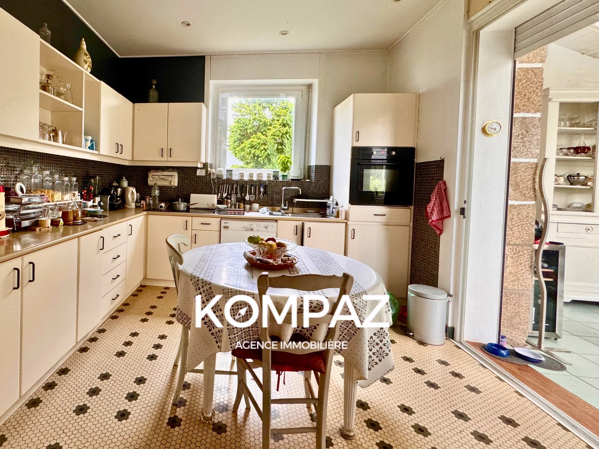 BRETAGNE – CÔTES-D’ARMOR – LAMBALLE Votre agence immobilière Kompaz vous propose à la vente cette belle maison familiale, idéalement située en plein cœur de Lamballe, offrant un cadre de vie privilégié à proximité immédiate des commodités. Une visite virtuelle 360° est disponible sur notre site internet pour découvrir le bien comme si vous y étiez. La maison se compose d’un hall d’entrée, d’un salon-séjour chaleureux agrémenté d’un poêle à bois, d’une cuisine aménagée et équipée, ouverte sur une véranda lumineuse, ainsi que d’une chambre avec salle d’eau et WC, idéale pour une vie de plain-pied. À l’étage, vous profiterez de quatre belles chambres, d’une salle de bains et d’un WC indépendant. Le sous-sol intégral offre de multiples possibilités d’aménagement grâce à sa cuisine, sa chaufferie et ses deux caves. Le tout est édifié sur un terrain de 1700 m², divisible, un atout rare en plein cœur de Lamballe, offrant des perspectives intéressantes selon vos projets.
