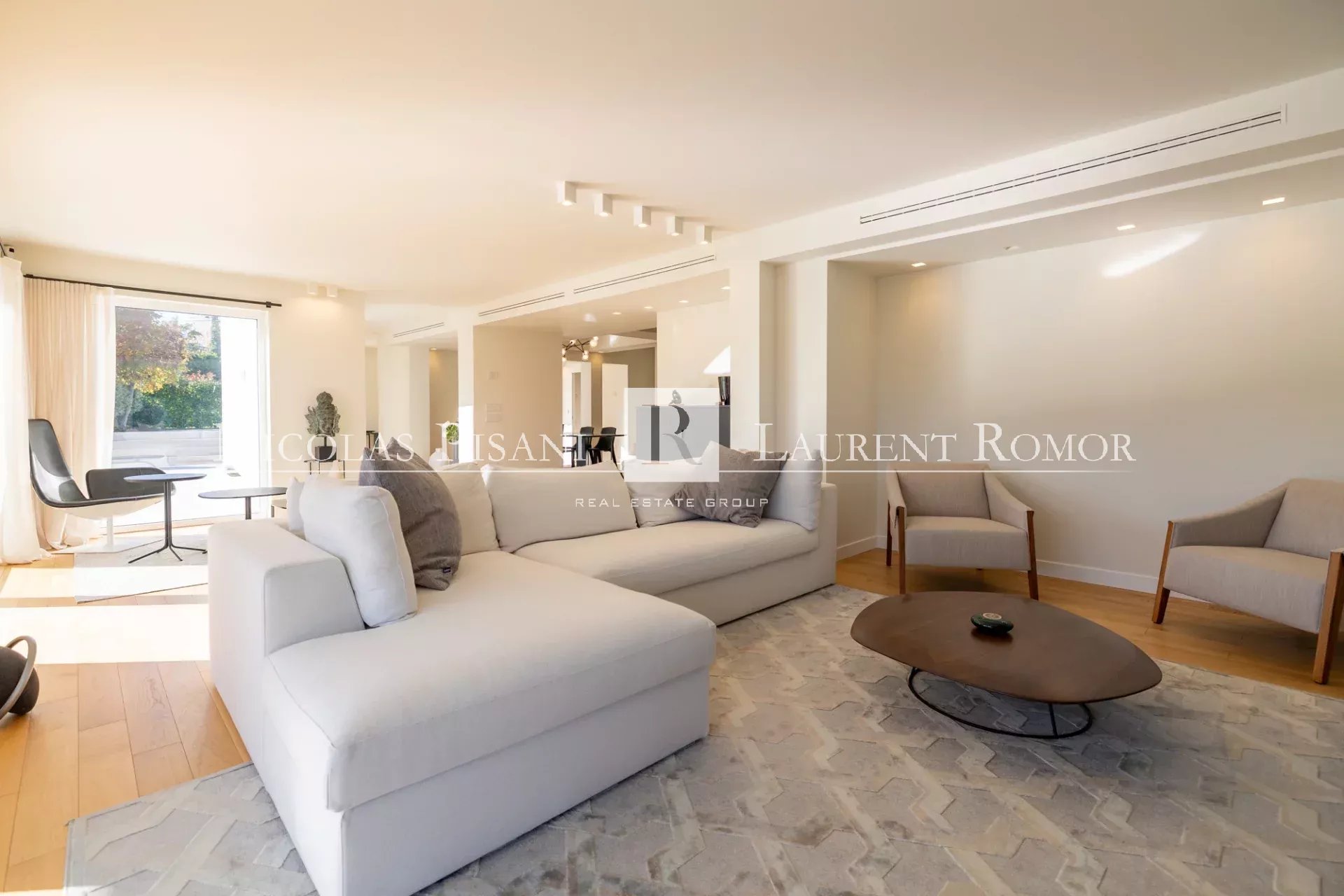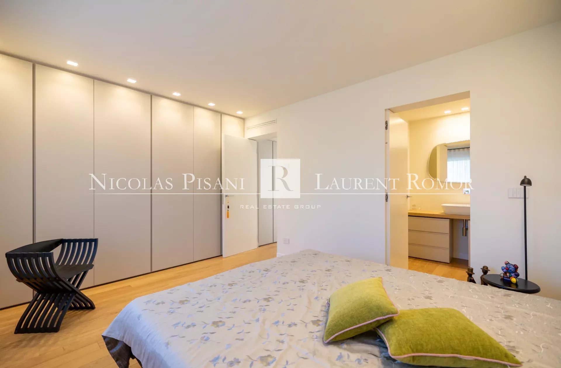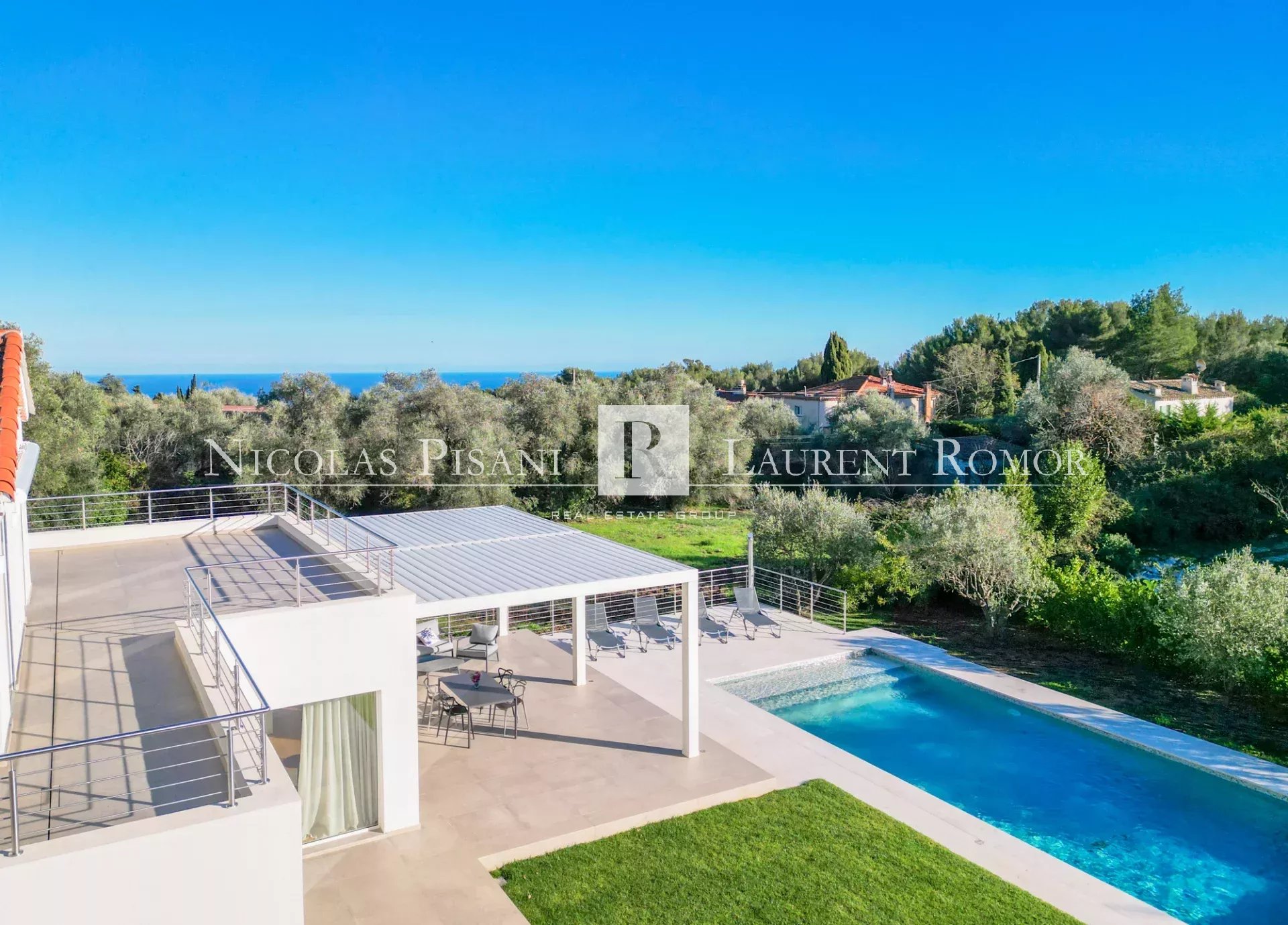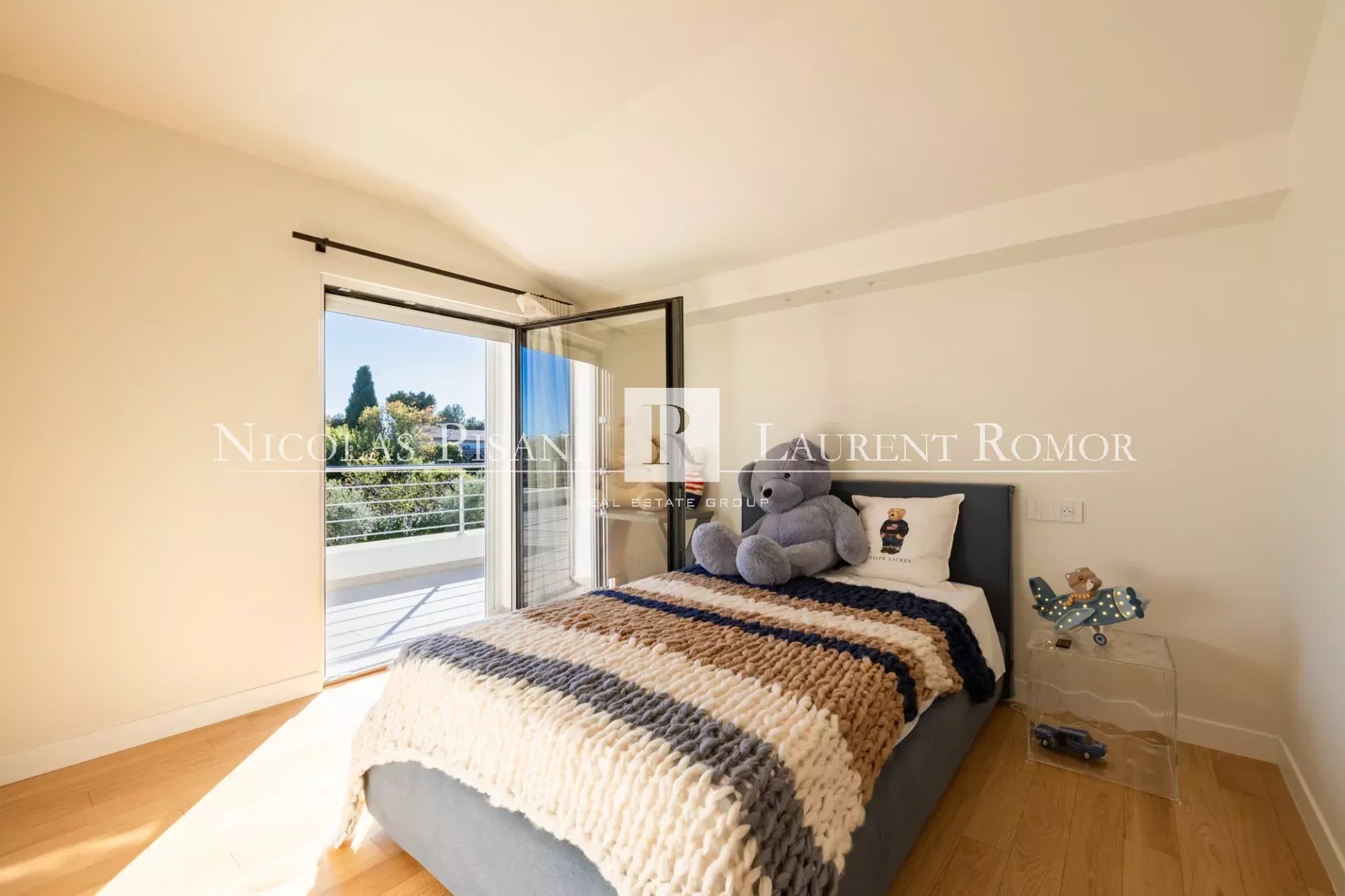 EN VENTE Propriété 4 pièces sur 2 niveaux, située dans un quartier résidentiel recherché et au calme. Élégante villa de 170 m² entièrement rénovée, édifiée sur une parcelle plate de 1 517 m² avec piscine au sel. Au rez-de-jardin : entrée, cuisine ouverte équipée avec coin repas, séjour lumineux ouvrant sur une grande terrasse avec pergola bioclimatique, buanderie, toilettes invités, et première chambre avec dressing et salle d’eau/WC en suite. À l’étage : deux suites, dont une avec salle de bain et l’autre avec salle d’eau, chacune avec WC, bénéficiant d’un accès à une vaste terrasse de 60 m² avec vue sur le jardin et un aperçu mer. Prestations haut de gamme : climatisation centralisée, chauffage au sol, éclairage LED, double vitrage, moustiquaires... Extérieurs : espace piscine sécurisé, jardin paysager, nombreuses places de stationnement. Honoraires à la charge du vendeur. Bien non soumis au régime de copropriété.