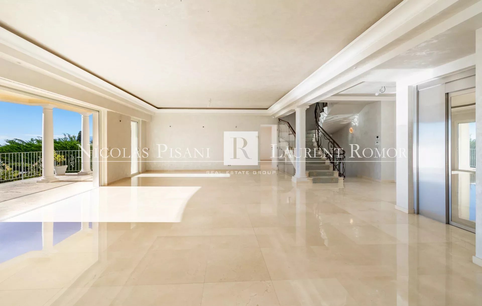 La propriété dévoile une vaste réception lumineuse, parfaite pour recevoir en toute élégance, sublimée par de généreuses baies vitrées ouvertes sur la mer. Les espaces intérieurs allient noblesse des matériaux, confort et sophistication.