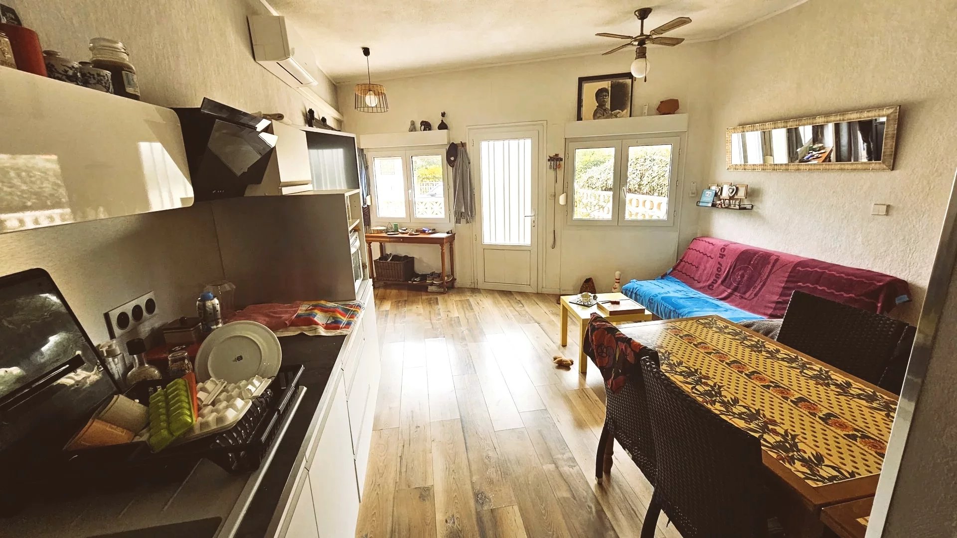 Bel et grand appartement T2 en rez-de-chaussée, idéalement situé au cœur de la station de Narbonne Plage, à deux pas des commerces et de la plage. Entièrement rénové, il se compose de : - une lumineuse pièce à vivre avec cuisine ouverte équipée - une grande chambre - une salle d’eau moderne - WC séparés Vous profiterez également d’un rare extérieur privatif de 80 m², comprenant un emplacement de stationnement pour véhicule et un abri de jardin, parfait pour les retours de plage, les repas en plein air ou le rangement. Idéal résidence principale, pied-à-terre en bord de mer ou investissement locatif saisonnier. Agence Orphea LC Immobilier – 04 68 320 320 (choix n°2) Réf. : LC1063