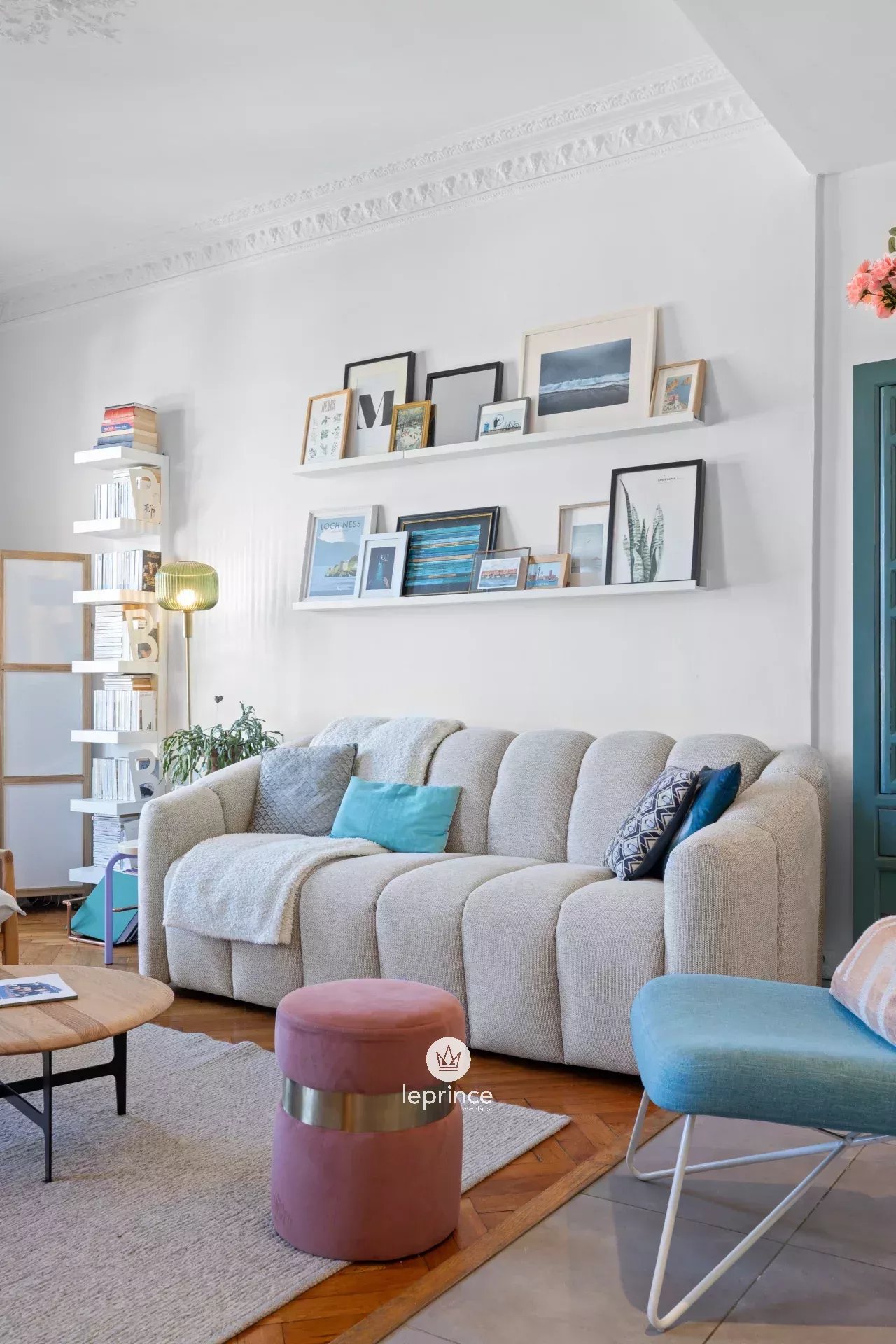 L'appartamento è composto da un ampio soggiorno con cucina completamente attrezzata, un disimpegno, un bagno con doccia, una bella camera da letto luminosa in posizione tranquilla e una seconda camera da letto che potrebbe ospitare un bambino o un ufficio. L'immobile dispone di aria condizionata reversibile, doppi vetri, soffitti alti e modanature d'epoca.
