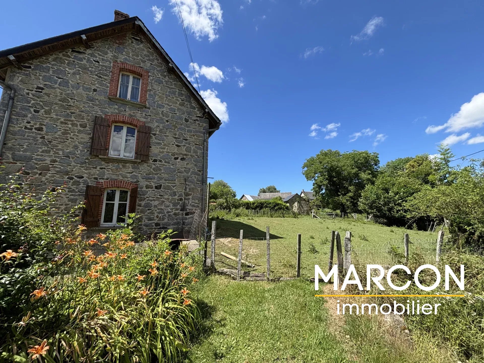 SECTEUR GIAT - MARCON IMMOBILIER - REF 88986 Une maison à rénover en partie sur cave comprenant un rez-de-chaussée de : Cuisine (cheminée), arrière cuisine, une chambre, bureau, wc. 1er étage : Palier, deux chambres, salle d'eau - wc. Grenier au-dessus. Remise attenante. Puits. Terrain attenant de 700 m². Prix : 55 000€ (honoraires d'agence inclus de 10 % TTC à la charge de l'acquéreur). (Prix : 50 000 € hors honoraires). Réseau de 3 agences en Creuse : Aubusson, Guéret et La Souterraine. 05-55-66-20-37