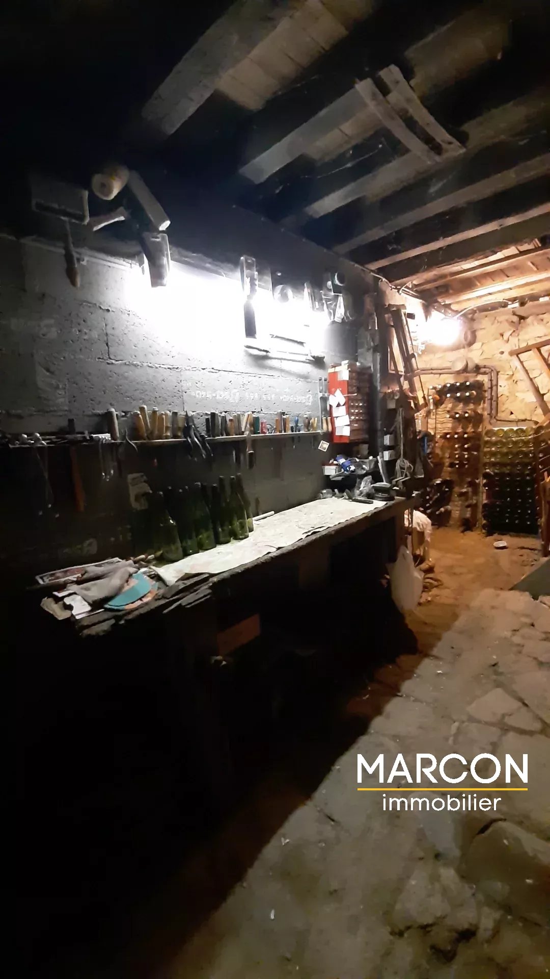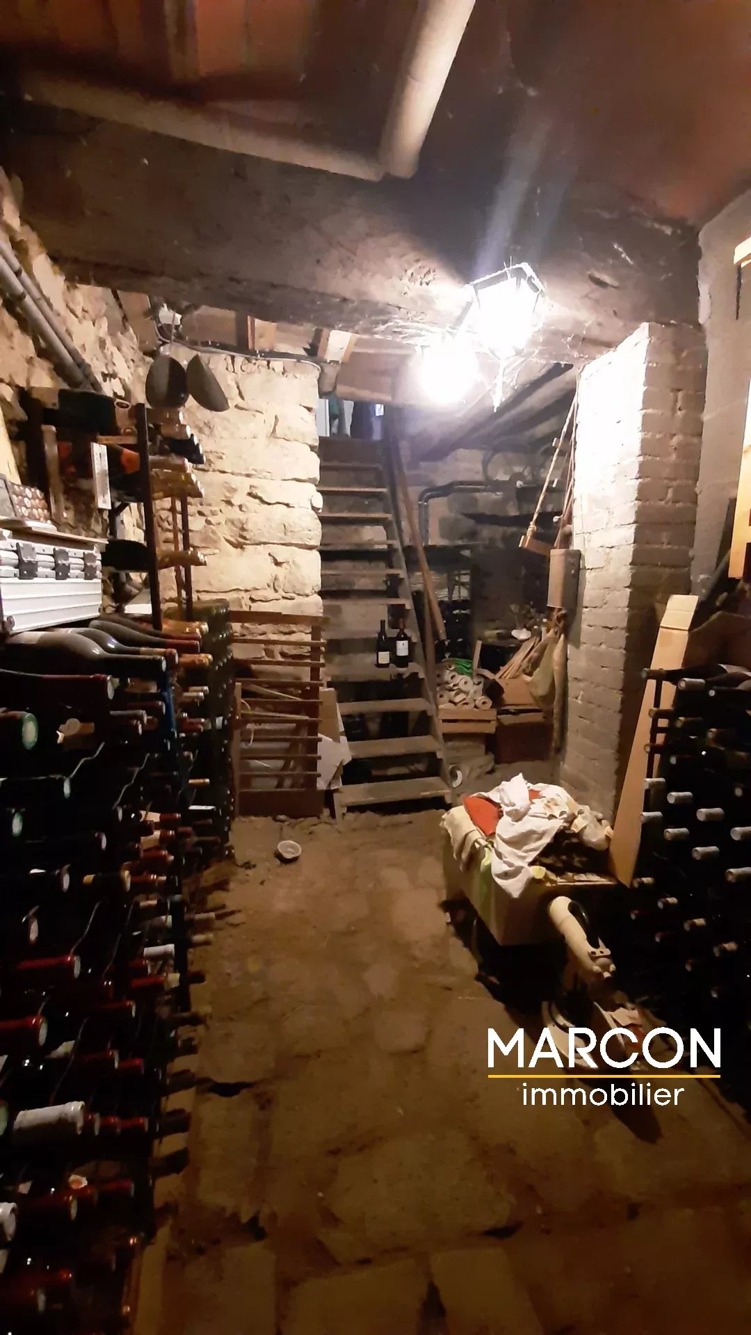 En rez-de-chaussée : une pièce de 23 m² à aménager, deux caves et un coin chaufferie.