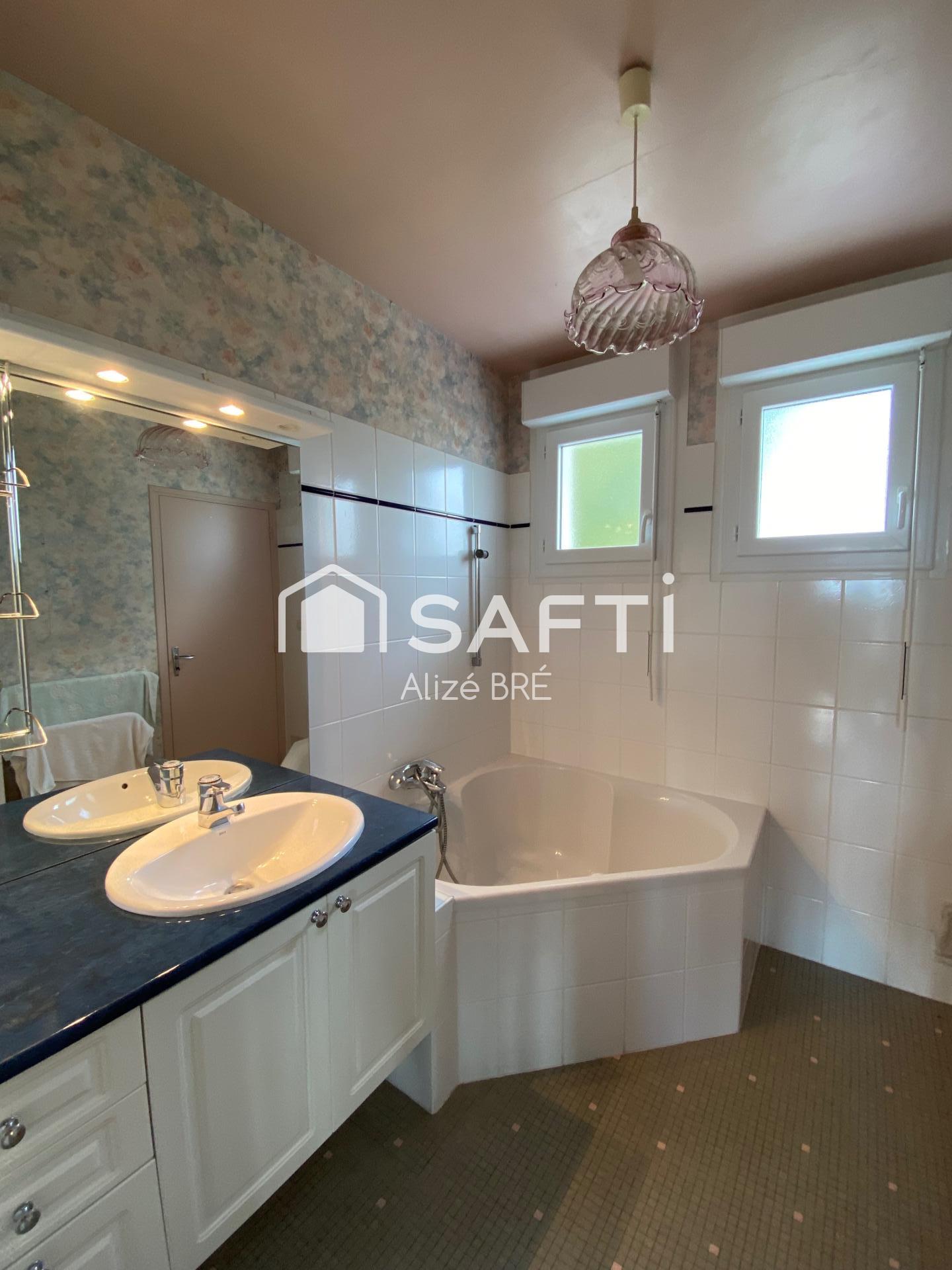 À l'étage, la maison propose une cuisine aménagée et équipée ouverte sur un lumineux séjour, trois chambres supplémentaires, une salle de bains et des WC indépendants.