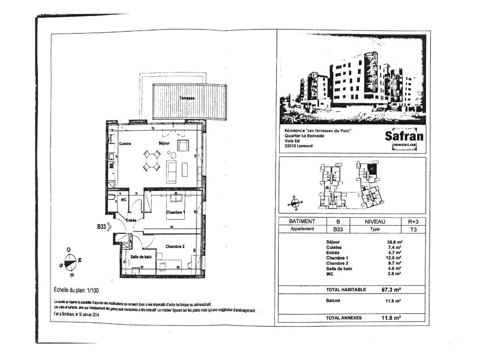 LORMONT : Rue Georges-Jérôme Duret. Appartement T3 de 67m² dans une résidence de standing, offrant une grande pièce de vie avec cuisine ouverte et équipée (plaque de cuisson et hotte) donnant sur une terrasse de 12 m², deux chambres, une salle de bains et un WC séparé. Il dispose également d'une place de parking sécurisée. Disponible le 22 décembre 2025. Loyer 921.92 euros CC (Entretien des communs chauffage et eau compris) Dépôt de garantie : 796.92 euros Honoraires : 921.92 euros dont 201,90 euros pour l'état des lieux d'entrée. Informations et contact par téléphone au 05.56.50.90.30. Ne ratez pas votre futur logement en vous abonnant à notre compte insta @agencewimmo WIMMO, spécialiste de la gestion locative Bordeaux - Pessac