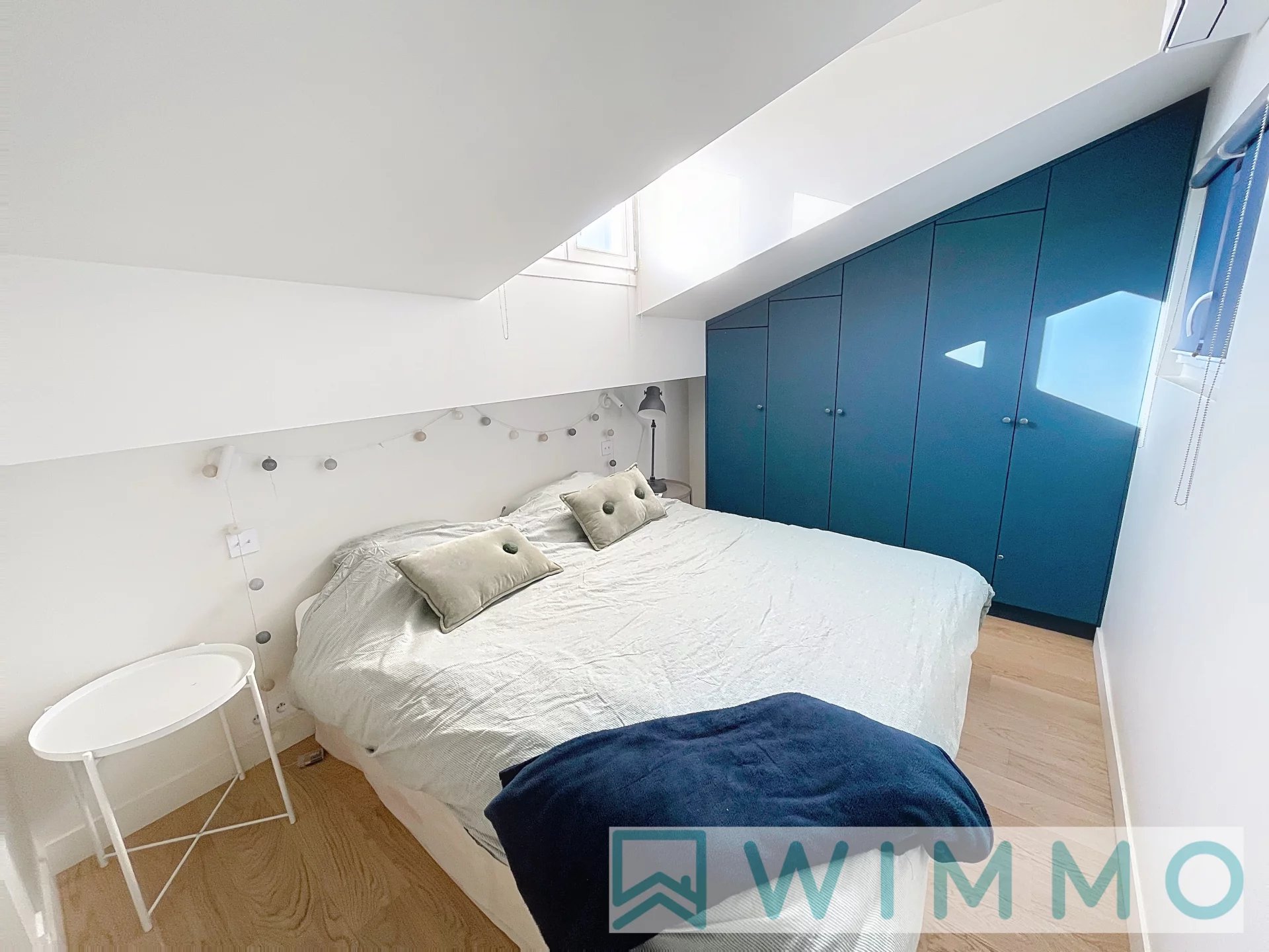 Une belle chambre mansardée : Située à l'étage (en duplex), la chambre bénéficie d'une ambiance cocooning grâce à sa toiture mansardée.