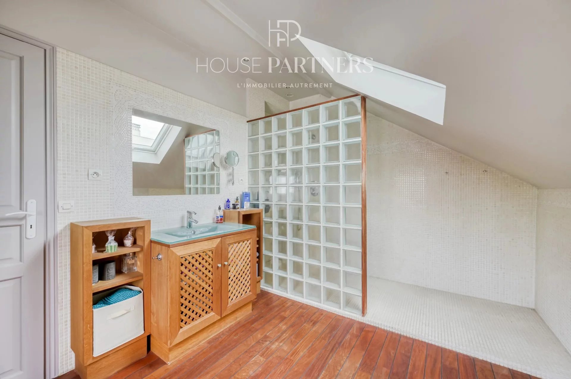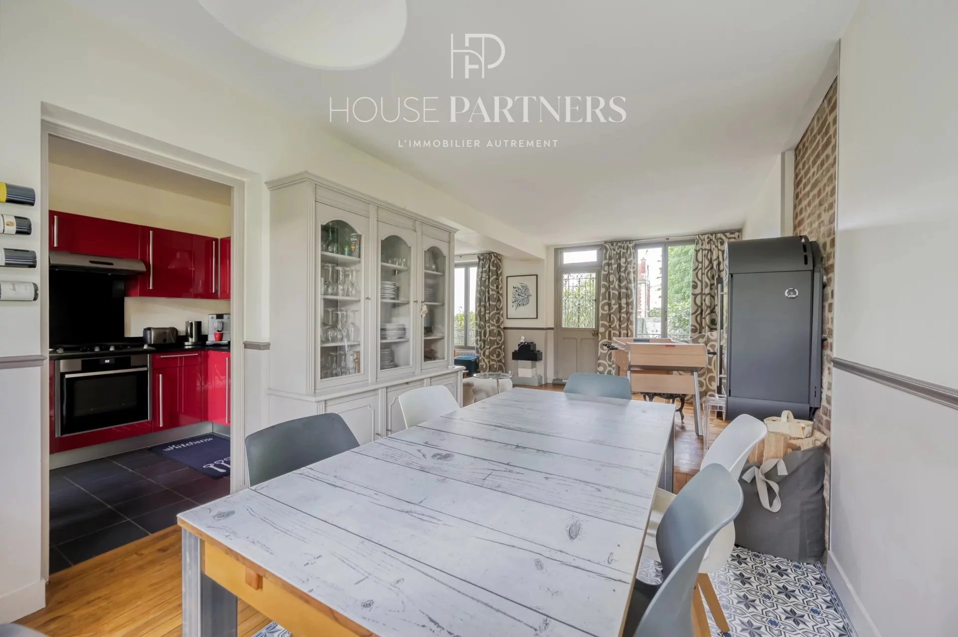 Idéalement située à seulement 5 minutes à pied du cœur animé de Rueil-Malmaison et à 10 minutes du RER A, cette maison de 126 m² allie espace, lumière et praticité. Dès l’entrée, vous serez séduit par son vaste séjour baigné de lumière, sa cuisine séparée et entièrement équipée, parfaite pour les repas en famille ou entre amis. À l’étage, quatre chambres dont une spacieuse suite parentale, une salle de bain et deux WC offrent un confort optimal pour tous. Profitez également d’une belle terrasse ensoleillée et sans vis-à-vis, idéale pour les moments de détente en extérieur. Le sous-sol abrite une buanderie et une cave à vin, ajoutant encore à la fonctionnalité de ce bien. Proche des commerces, des écoles et des transports, cette maison est un véritable coup de cœur à découvrir sans tarder !