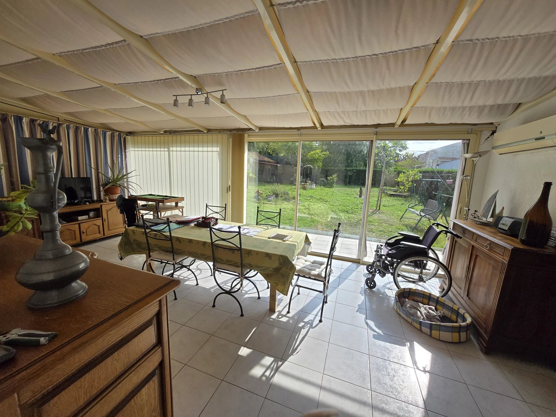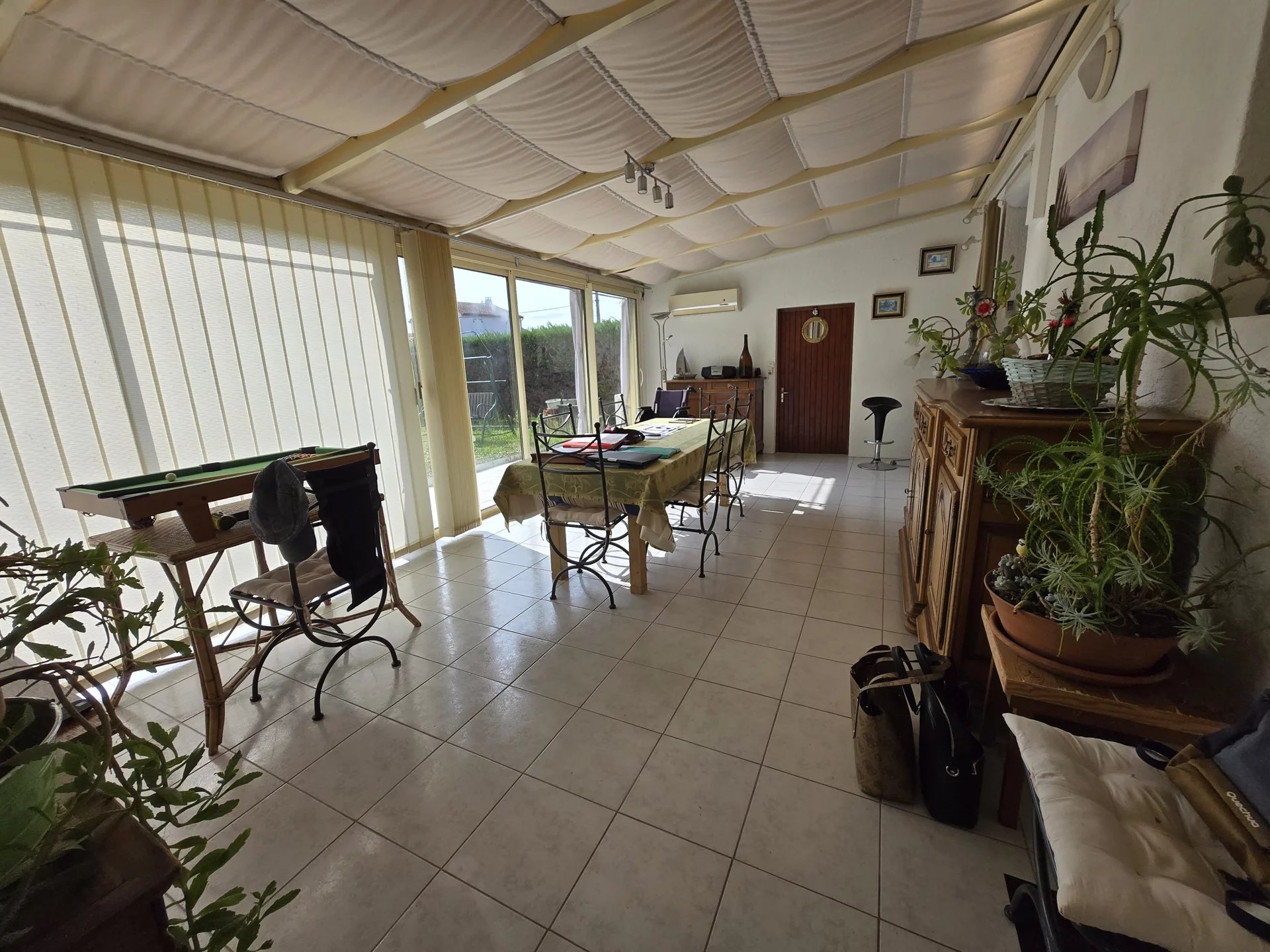 Contacter Delphine au 06 14 54 27 34 Au cœur d'Etauliers, venez découvrir cette magnifique maison comprenant un salon/séjour avec cheminée et insert, 3 chambres, une salle d'eau avec douche à l'italienne et un w-c. Attenant et communiquant avec la maison se trouve une magnifique véranda avec chauffage et climatisation, donnant d'un côté sur une terrasse couverte avec barbecue, de l'autre dans une arrière cuisine et un grand bureau "cette partie pourrait être reconvertie en gite sans problème". Le tout sur un magnifique terrain clôturé et arboré de 1000m² avec garage.