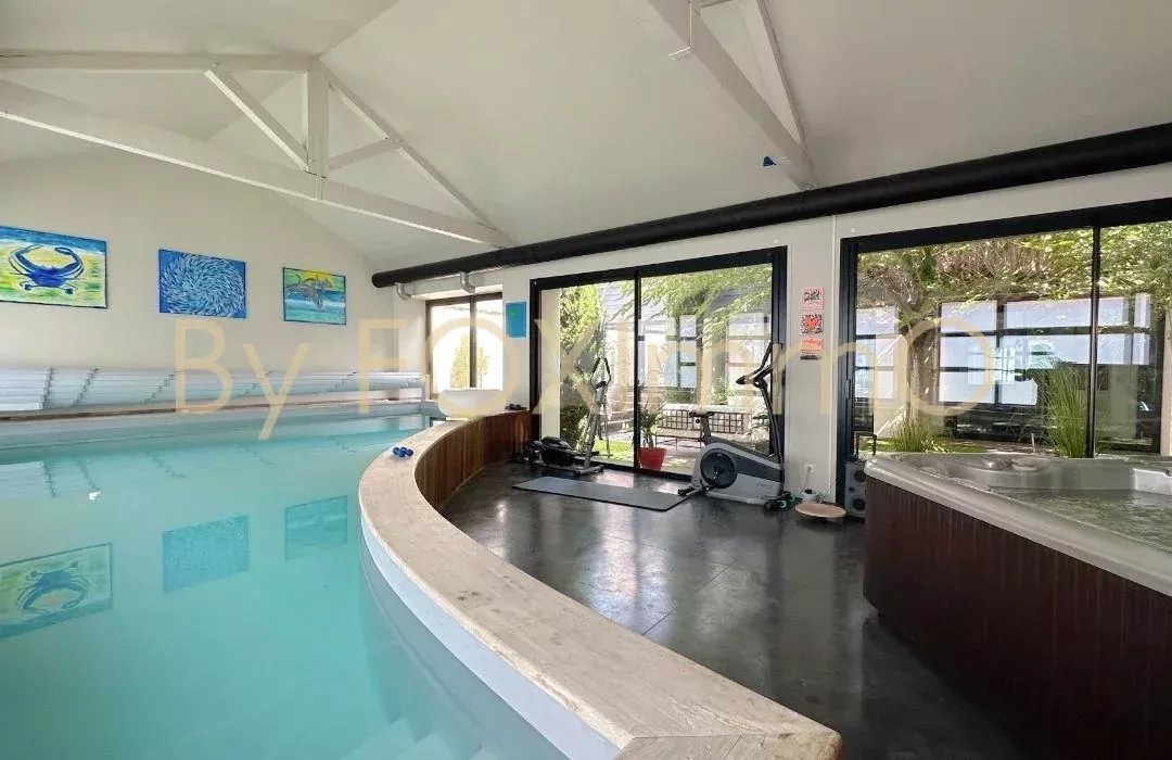 Pour se relaxer en toute saison, une piscine intérieure agrémentée d’un jacuzzi et d’une salle de sport ouvrant sur le jardin.