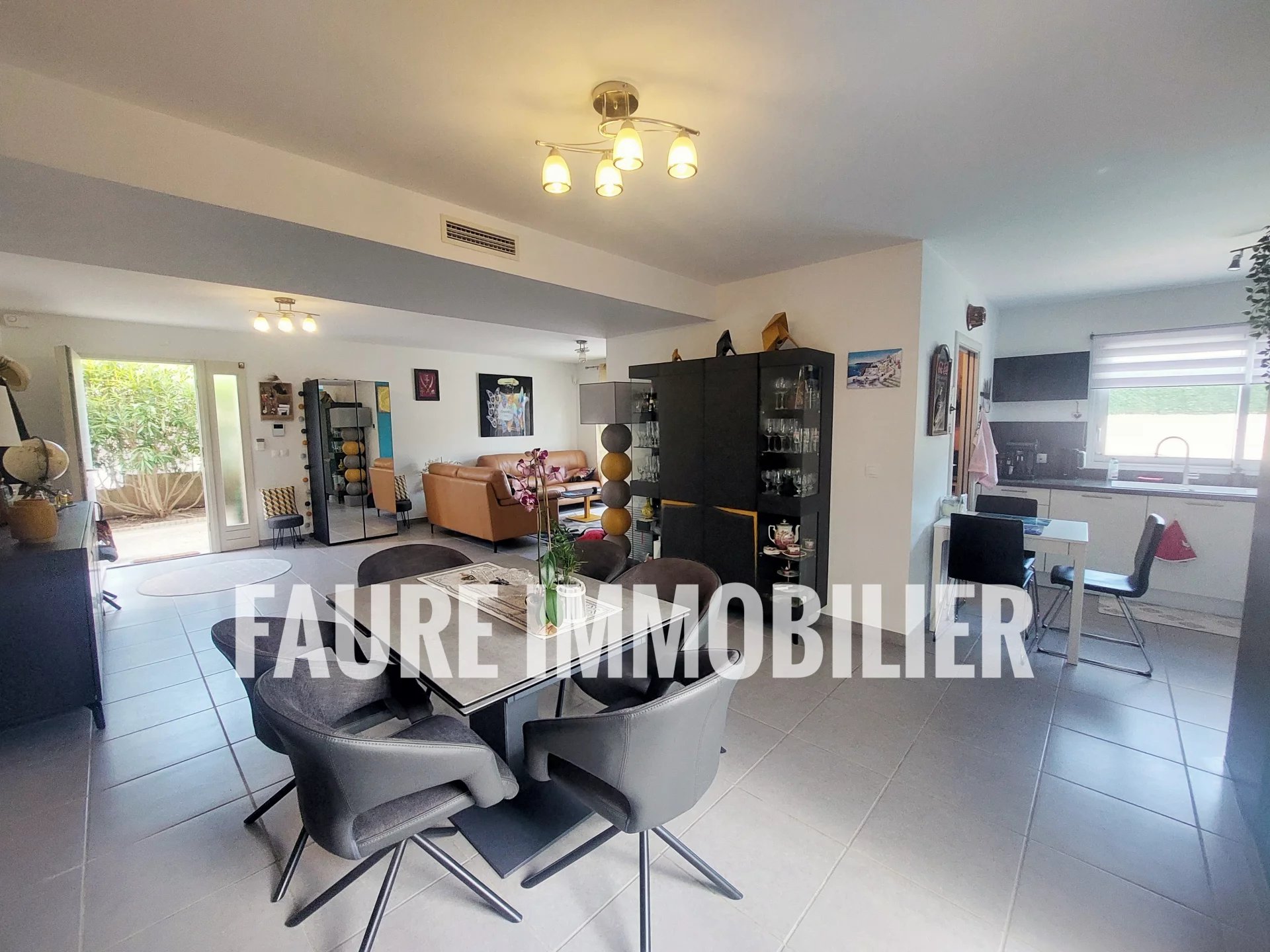 Villa récente de plain-pied située dans un quartier recherché ! (résidentiel et calme) Très belle pièce à vivre spacieuse et lumineuse avec séjour, cuisine ouverte équipée et coin salon. Belle terrasse avec pergola bioclimatique et stores, 3 Chambres, 1 bureau, 1 salle de bain (avec baignoire et douche à l'italienne) et 2 toilettes séparées. Terrain de 500m2 clos et arboré avec garage et portail électrique. Coin cocooning avec belle terrasse carrelée encourant la piscine (sécurisé avec un volet roulant), sans vis à vis. Belles prestations : Pompe à chaleur gainée réversible, volets roulants, fibre installée... Posez vos valises, AUCUN TRAVAUX à prévoir. 💥 EXCLUSIVITÉ 💥 ➡️ Prix : 425 000 € HCV ⏳ Ne tardez pas ! ref 2176 DPE : B EN COURS DE RENOUVELLEMENT « Les informations sur les risques auxquels ce bien est exposé sont disponibles sur le site Géorisques : georisques.gouv.fr »