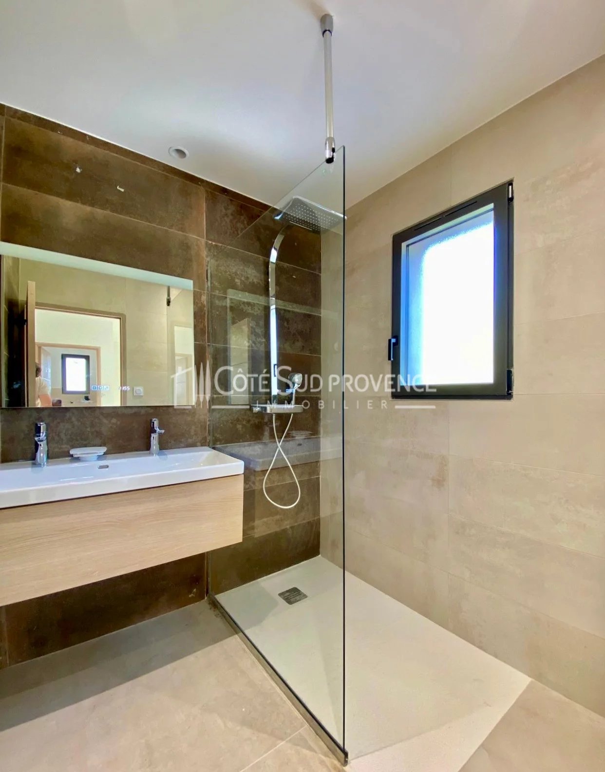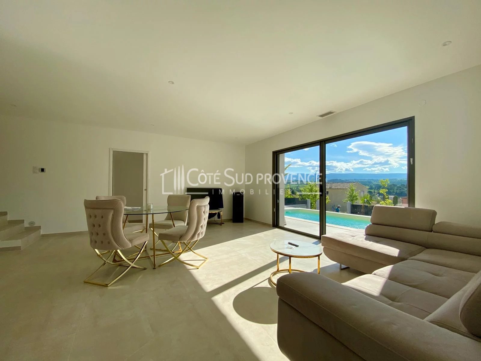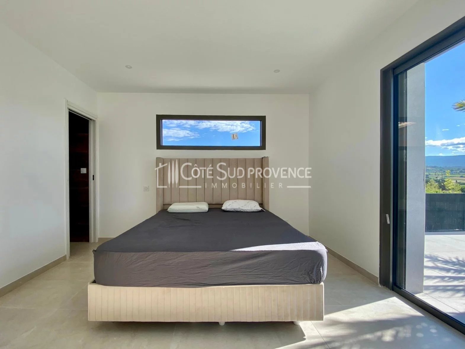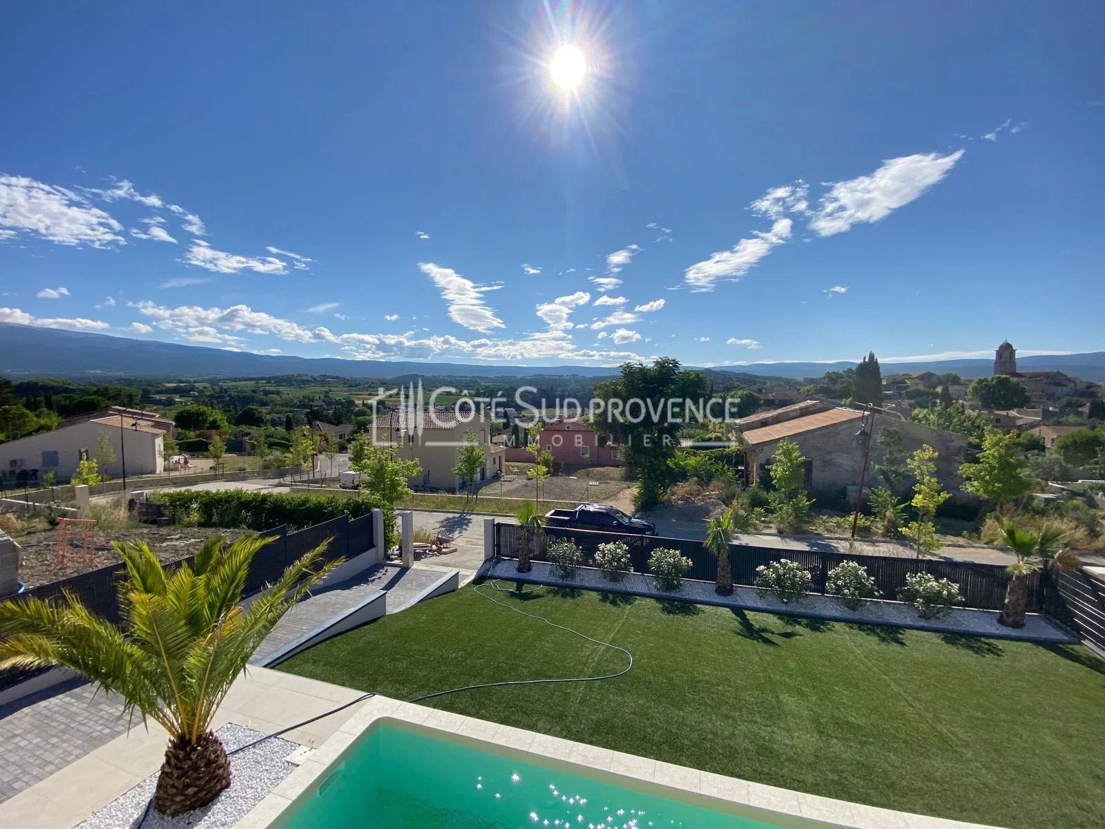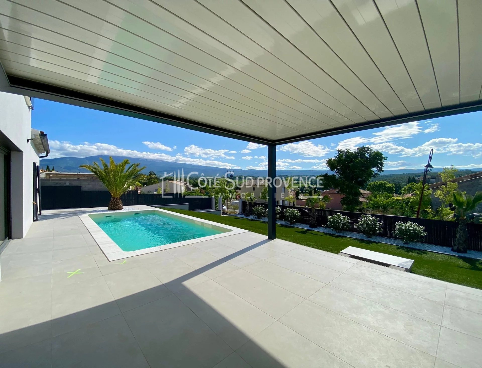 A 5 mn de BEDOIN au Sud du Mont-Ventoux et 40 mn d'AvignonTGV, au calme absolu et en position dominante sur le village et les Monts de Vaucluse, villa neuve d'environ 130 m² habitables sur deux niveaux, garage doublé carrelé et isolé, piscine liner pvc armé, deux minutes à pieds du village avec commerces à l'année de Mormoiron. Hall d'entrée vestiaire, salon poêle à granules, séjour cuisine aménagée et équipée, cellier, dégagement, wc indépendant, chambre parentale en rez de chaussée avec son dressing et sa salle d'eau, escalier béton, palier, deux chambres avec dressing, salle d'eau et wc indépendant. Emplacement exceptionnel et construction aux matériaux de qualité et finitions soignées.
