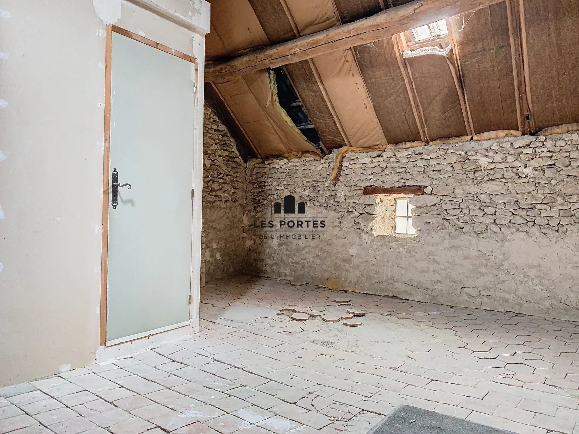 A l' étage, un palier desservant une grande chambre avec toilette, un grenier composé de 2 beaux espaces en enfilades aménageables d'environ 45m².