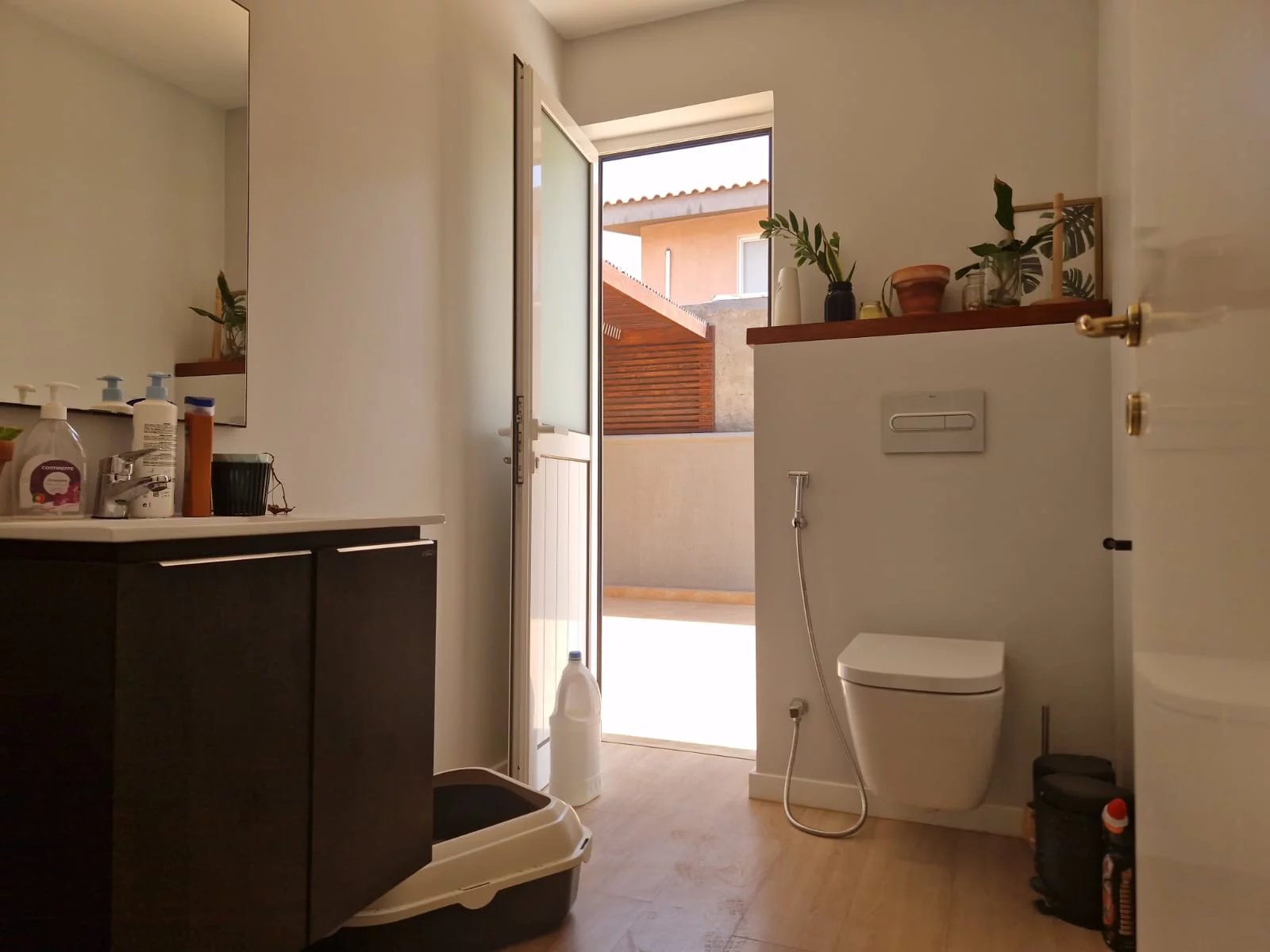 - 1 grande cour partiellement couverte par une pergola en bois