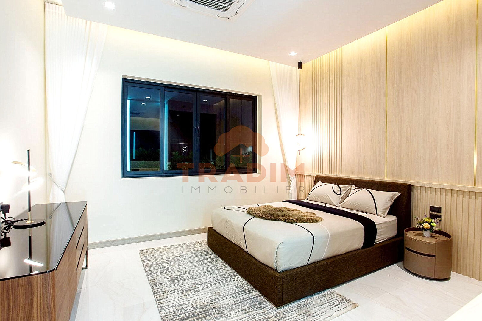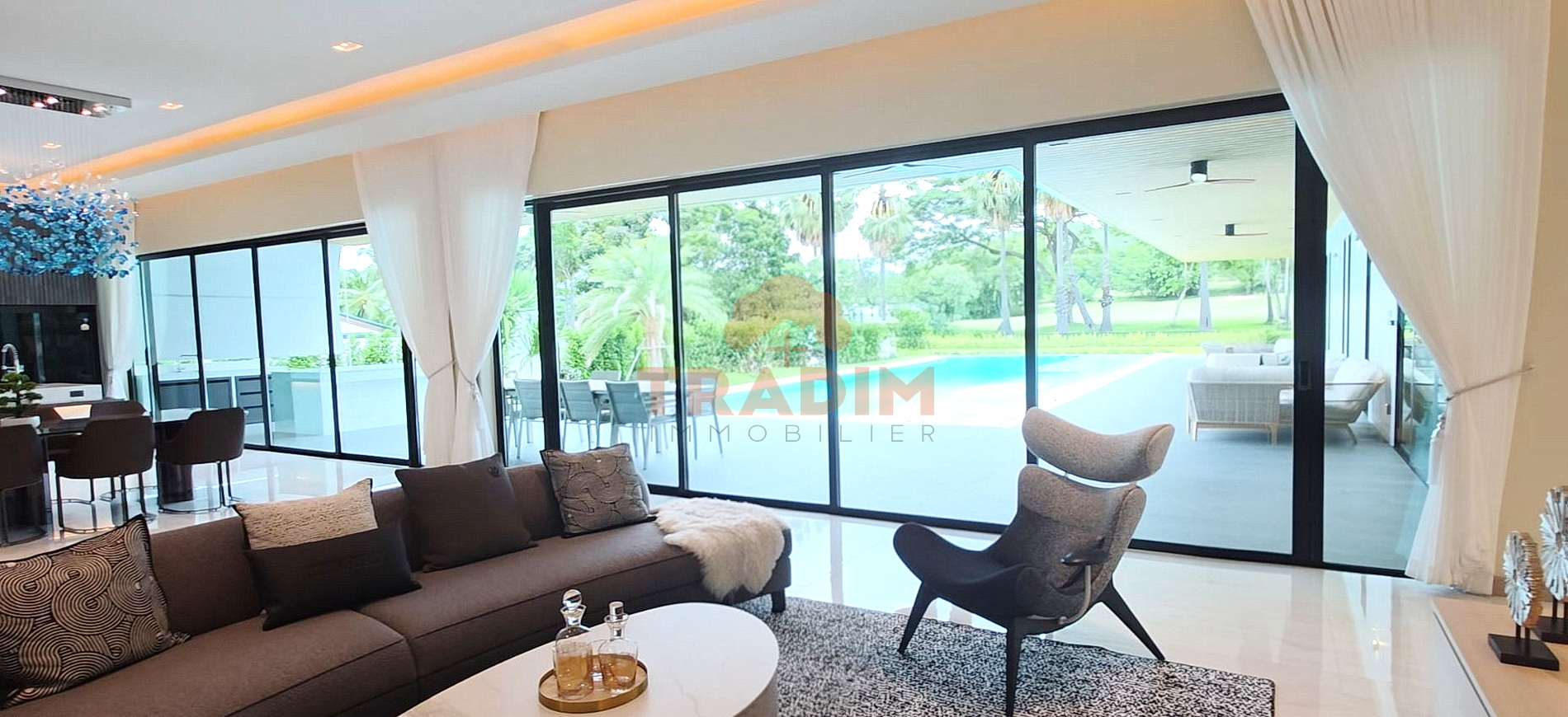 Propriété d'Exception à Hua Hin : L'Harmonie du Luxe et du Calme (Version Définitive) Hua Hin : Autrefois refuge estival de la famille royale de Thaïlande, Hua Hin est aujourd'hui reconnue pour son élégance discrète. Cette ville côtière est réputée pour sa tranquillité, ses plages magnifiques, ses parcours de golf de classe mondiale et son atmosphère sophistiquée et conviviale, loin de l'agitation des destinations plus festives. Découvrez une adresse prestigieuse, où l'élégance architecturale rencontre un confort de vie inégalé. Cette magnifique résidence est une invitation à un quotidien serein et sophistiqué. ? Les Atouts Majeurs et Privilèges Exclusifs Emplacement de premier choix : Nichée dans une résidence sécurisée, cette propriété jouit d'une localisation idéale. Vous êtes à quelques minutes seulement du vibrant centre-ville de Hua Hin, des plages immaculées, des écoles internationales réputées et de toutes les commodités. Vue et Avantage Golf : Profitez d'une vue imprenable sur le parcours de golf. Un privilège rare : l'adhésion au club de golf est incluse à vie, offrant un accès illimité aux passionnés. Surface et Prestige : Une généreuse surface habitable de 700 m², érigée sur un terrain paysager de 2 400 m². ?? Un Cadre de Vie Spectaculaire Pénétrez dans un espace où la lumière est reine. Réception Majestueuse : Un séjour ouvert d'une rare élégance, bénéficiant d'une hauteur sous plafond exceptionnelle. De vastes baies vitrées inondent la pièce d'une très belle luminosité et offrent une vue imprenable. Espaces Culinaires : Une cuisine intérieure entièrement équipée de standing et une salle à manger dédiée. A l'extérieur, une cuisine extérieure entièrement aménagée (l'Outdoor Kitchen) est parfaite pour les réceptions. L'Oasis Extérieure : Le séjour s'ouvre directement sur une spectaculaire piscine de 18 mètres, entourée d'une magnifique terrasse, le tout dans un calme absolu. ?? La Suite Parentale : Le Sanctuaire du Repos L'espace nuit est conçu comme un véritable refuge de luxe. Chambre de Maître Exceptionnelle : La suite parentale est un lieu de repos spacieux et baigné de lumière. Elle est complétée par un somptueux dressing haut de gamme, offrant un rangement sur mesure et sophistiqué pour vos plus belles parures. Chambres Suites Secondaires : Les deux autres chambres spacieuses bénéficient également chacune de leur salle de bains privative, équipées de prestations et d'un équipement haut de gamme. Salles de Bains : L'ensemble totalise 3 salles de bains complètes ainsi qu'une salle d'eau invités. ? Commodités Pratiques Logistique : Une chambre de service avec sa propre salle d'eau, une buanderie pratique et un garage couvert de 4 emplacements assurent un confort logistique complet. Sécurité 24/7 : La propriété est située au sein d'une résidence sécurisée. Prix de Vente : 42 000 000 THB Cette résidence est l'incarnation du luxe à la Thaïlandaise, offrant espace, intimité et un accès privilégié aux loisirs et facilités de Hua Hin. Contactez-nous dès aujourd'hui pour organiser une visite privée de ce bien d'exception ! Eric Bertrand, conseils immobiliers depuis 1989