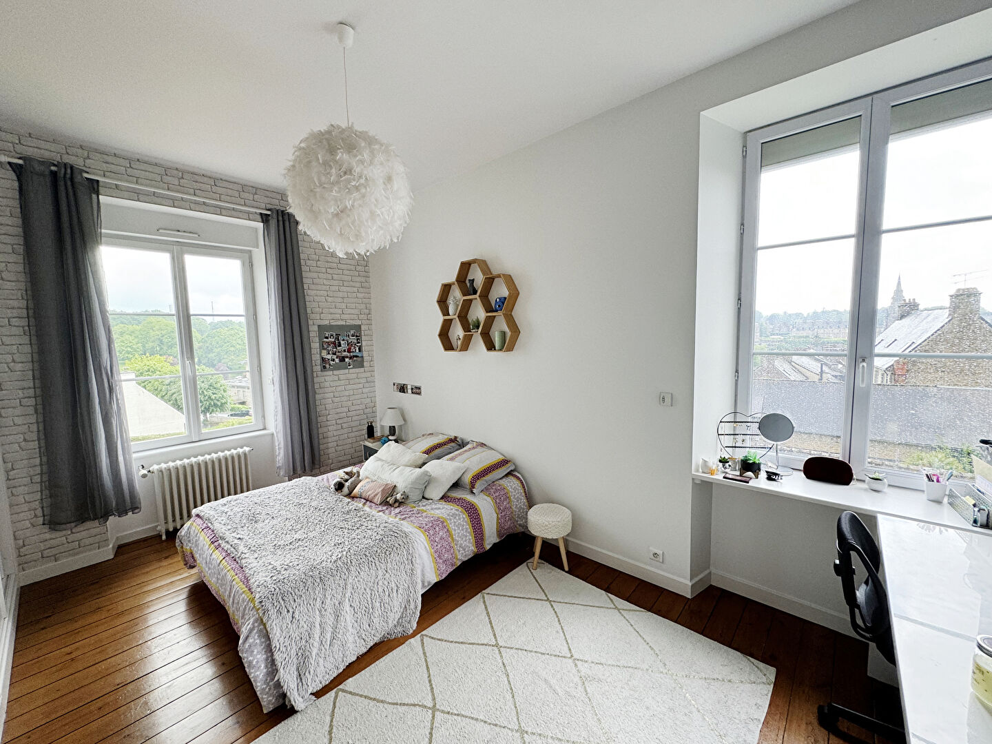 A VENDRE, QUINTIN, centre ville, belle maison de Maître avec extension de 2003 (159 m² habitables), sur un terrain clos de 2380 m², comprenant en rez-de-jardin : entrée, salon/séjour (cheminée) avec accès terrasse, cuisine aménagée et équipée, salle à manger, wc avec lave-mains; à mi-palier : 2 chambres dont une avec salle d'eau privative; au premier étage : palier, 2 chambres avec placards, salle de bains, wc; au dessus : grenier aménageable; en rez de rue: garage double (60 m²) , PARC ARBORÉ CLOS DE MÛRS (constructible), PRESTATIONS DE QUALITÉ, ENSOLEILLÉE et CALME (3.99 % honoraires TTC à la charge de l'acquéreur.)