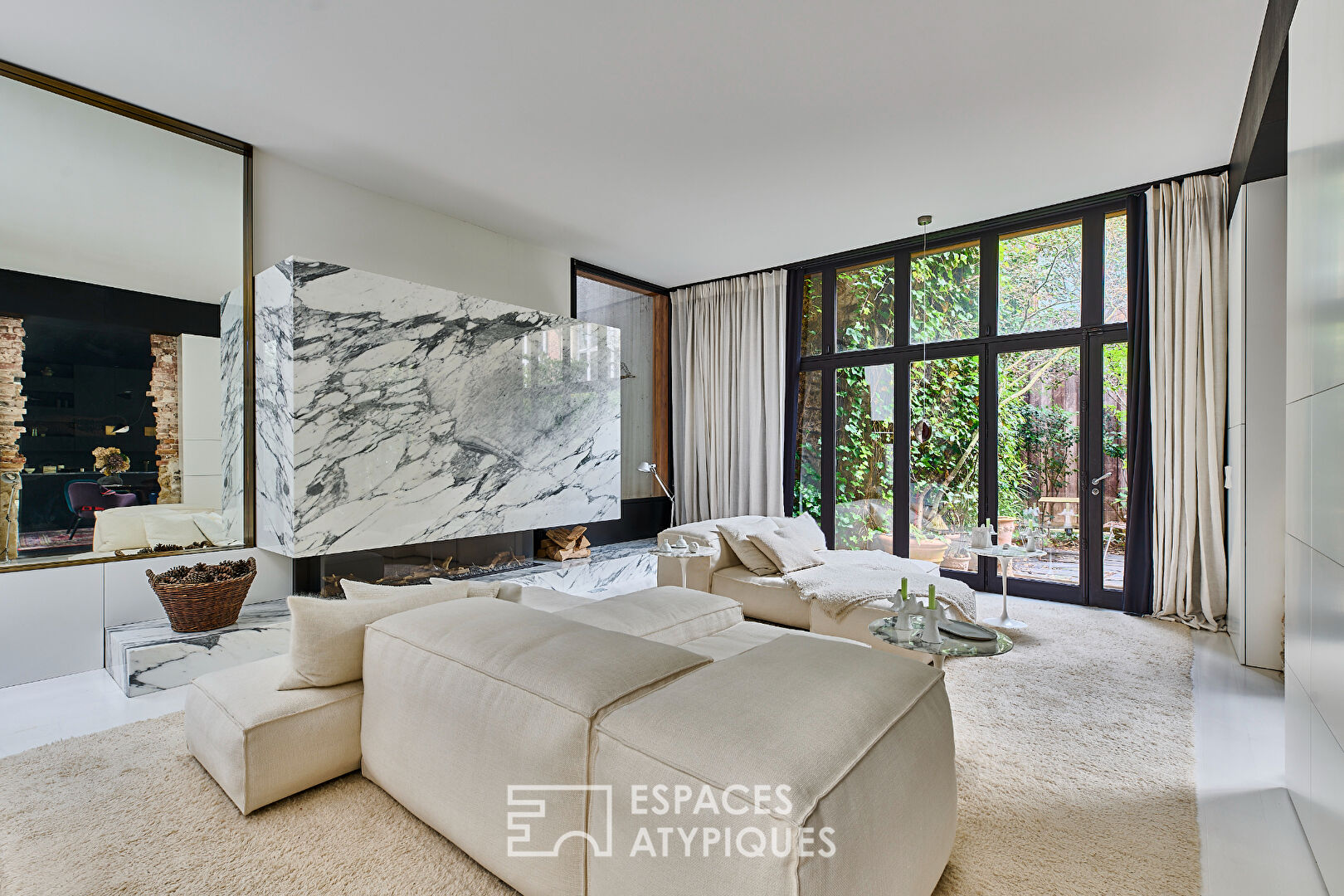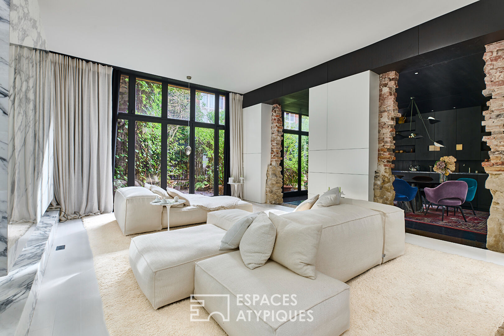 Si le luxe est bien l'espace, la rareté est aussi dans les détails et l'unicité de cet appartement. Ce superbe duplex, où volumes, espaces et matières nobles dialoguent dans un discours d'esthète et de collectionneur d'art contemporain, est aussi posé dans un lieu préservé. Niché au fond d'une impasse, dans un écrin aménagé et privilégié, ce bien de 160,42 m2 (158,62 Carrez) esprit maison-loft, offre un cadre de vie unique sublimé par une décoration choisie et soignée d'inspiration japonisante. Le bien bénéficie de deux entrées. L'entrée par le rez-de-jardin s'ouvre sur un salon immaculé où trône une magnifique cheminée à gaz entièrement vêtue de marbre blanc. Il jouxte la salle à manger et sa cuisine ouverte à l'ambiance plus feutrée et intimiste, toute en contraste, habillée de bois brûlé et ponctuée de touches subtiles de laiton. Ces espaces sont prolongés d'un côté par une terrasse et de l'autre par un patio, invitant à une continuité entre intérieur et extérieur. De l'autre côté de la cage d'escalier surmontée d'une verrière plein ciel, une double porte toute hauteur montée sur pivots dévoile une luxueuse suite. Sa salle de bains élégante marie marbres vert et noir, tandis que la chambre, chaleureusement habillée de bois, s'ouvre sur le patio. L'ensemble dissimule de nombreux espaces de rangement et de dressing. Vers le premier étage totalisant 60 m2, l'escalier graphique sur mesure en métal conduit à un très grand bureau agrémenté d'un joli mur en briques apparentes, d'une bibliothèque multicolore toute hauteur ajourée esprit claustra et d'une baie vitrée toute largeur exposée Sud-Est. La visite se termine là où elle aurait pu commencer à savoir sur la seconde entrée équipée de rangements sur mesure et desservant des toilettes séparées. Selon les besoins, l'espace bureau pourra aisément être aménagé en deux chambres accompagnées d'une deuxième salle de bains en lieu et place de l'entrée. La subtile gestion de la lumière naturelle par de multiples points d'entrée directs ou réfléchis (terrasse, patio, verrière zénithale, miroirs), ainsi que le jeu des points de vue et des perspectives, confèrent à ce lieu une perception d'espace encore plus vaste que ses généreuses dimensions ne le laissent supposer. Un écrin rare et tout à fait exceptionnel conçu pour les amateurs d'architecture et de design en quête d'un bien d'exception. Bien soumis au statut de copropriété. Métro Blanche Ligne 2 Contact : Fabrice +33 7 86 75 71 32 Copropriété de 6 lots - dont 6 lots habitation. (Pas de procédure en cours). Charges annuelles : 4008 euros. FABRICE DERRIEN (EI) Agent Commercial - Numéro RSAC : 951 254 671 - PARIS.