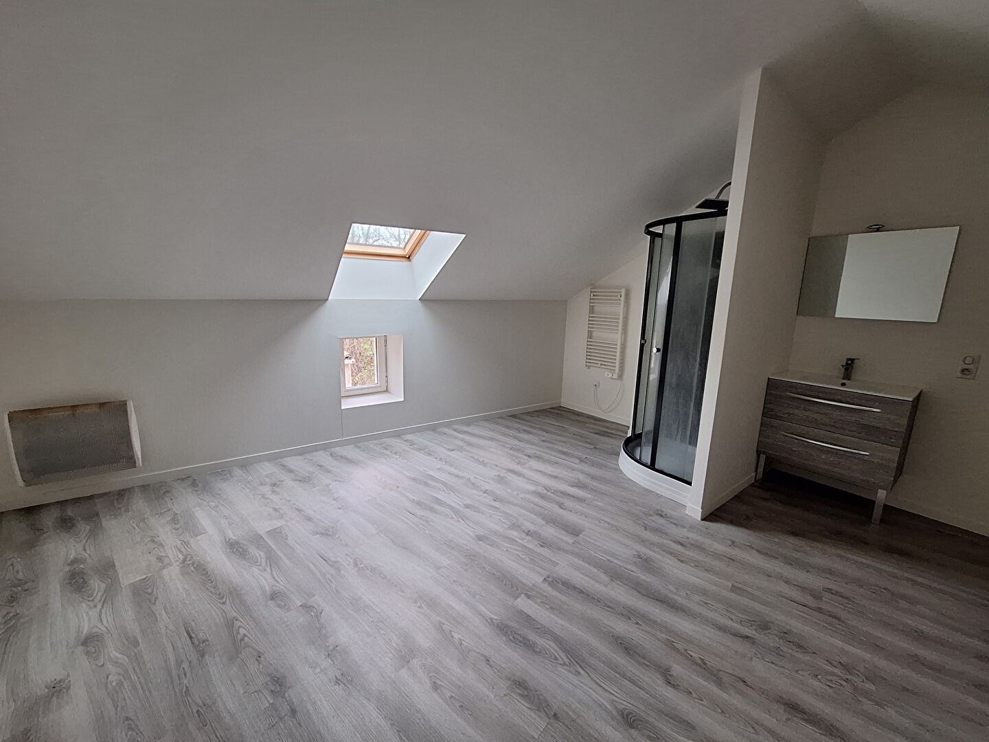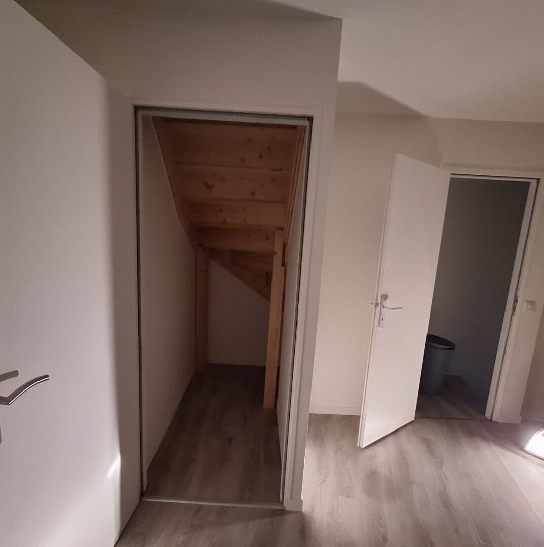 Libre fin février - PAS DE JARDIN, NI DE GARAGE. Maison de ville sur 2 étages. RDC : pièce de vie avec cuisine équipée d'une plaque et d'une hotte, WC séparé. 1er étage : une chambre avec douche et lavabo simple vasque. 2ème étage : une chambre avec douche et lavabo simple vasque.
