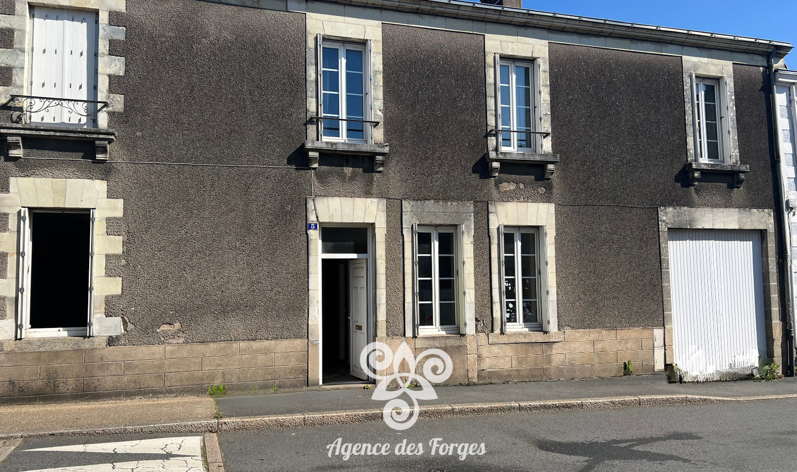 NOUVEAUTE à MOUZILLON, au calme, avec les commerces et écoles à pied, maison à rafraichir de 100 m² environ , 3 chambres, jardin et garage. Exclusivité AGENCE DES FORGES, maison de bourg comprenant au rez-de-chaussée : Hall d'entrée / Séjour- Salon avec cheminée / Cuisine aménagée avec accès direct au patio / WC / Buanderie. A l'étage : Trois chambres spacieuses (15 , 12.40 et 12.50 m²), dégagement avec placards / Salle d'eau. Patio aménagé et végétalisé sans vis-à-vis .