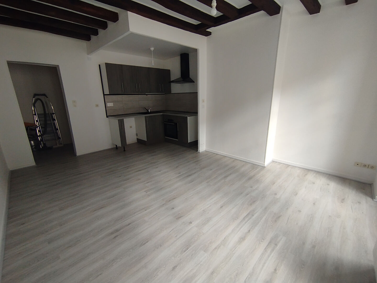 VIBRAYE. Appartement situé au 1er étage, comprenant : -Une entrée -Un salon/séjour ouvert sur une cuisine aménagée et équipée (four, plaque de cuisson, hotte) -WC indépendants Un dégagement avec placard desservant : -Une salle d'eau -Une chambre avec dressing L'appartement dispose également d'une place de parking. Chauffage assuré par convecteurs électriques. Assainissement : tout-à-l'égout. DISPONIBLE. Loyer 470 euros/mois + 25 euros de charges mensuelles (eau, électricité et entretien des parties communes)