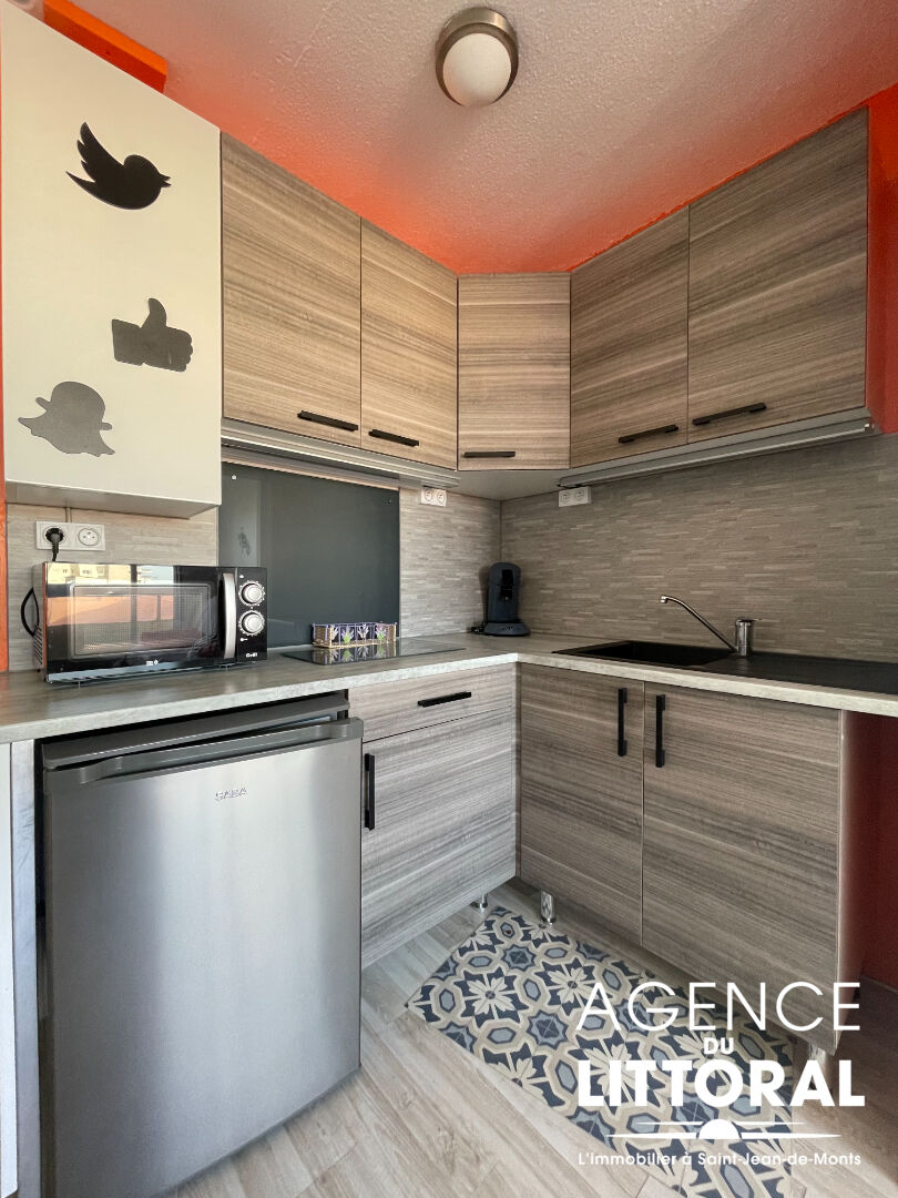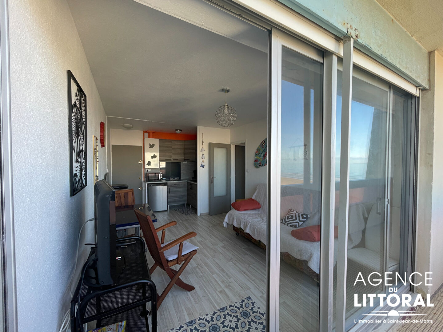 L'Agence du Littoral vous présente: A seulement 50 mètres de la plage des Demoiselles, un appartement meublé de type 2, situé au 5ème étage avec ascenseur comprenant : séjour avec coin cuisine donnant sur un balcon avec vue mer latérale, une chambre avec accès sur le balcon, une salle d'eau et wc. Une cave et une place de parking viennent compléter ce bien. Le petit plus : commerces à proximité, pistes cyclables et forêt domaniale à deux pas. A visiter au plus vite ! réf 414 Agence du Littoral - Agence immobilière à votre service sur le secteur de Saint-Jean-de-Monts et ses alentours. Contactez nous au 02.51.59.17.70. (7.50 % honoraires TTC à la charge de l'acquéreur.) Copropriété de 547 lots - dont 180 lots habitation. Charges annuelles : 600 euros.