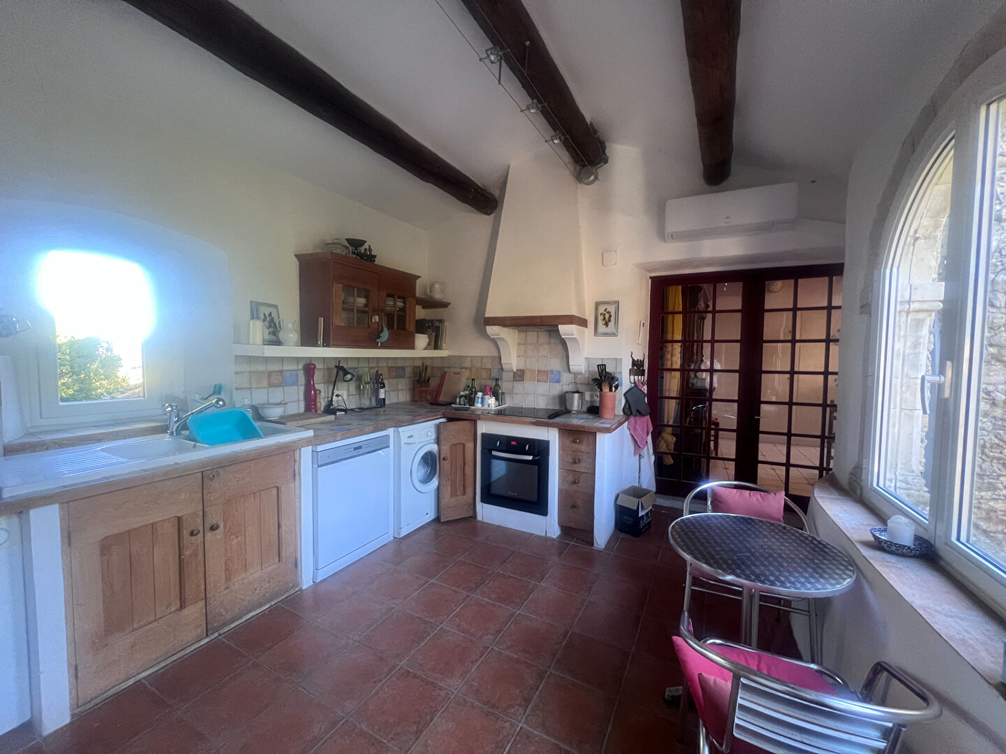 Découvrez le charme authentique du Sud de la France, avec ce magnifique Mas en pierre, situé dans un environnement paisible à proximité de Rousson, au Nord du Gard. Ancienne magnanerie, la propriété offre de beaux volumes répartis sur trois niveaux, idéal pour accueillir famille, amis ou hôtes en location saisonnière. Le logement principal se trouve au premier étage, accessible par un escalier extérieur en pierre. Une salle à manger conviviale dessert une salle de bains avec WC séparé. d'un côté, une cuisine lumineuse avec pièce attenante, de l'autre un salon avec une cheminée ouverte donnant directement sur une terrasse plein sud de 26 m² parfaite pour vos repas en extérieur avec vue sur la campagne environnante. Depuis la salle à manger ou la terrasse, un escalier mène au deuxième étage : deux chambres lumineuses, dont une avec salle d'eau privative, ainsi qu'une salle d'eau supplémentaire avec WC. En rez-de-jardin: L'ancien cellier vouté a été aménagé en logement indépendant avec accès direct sur une terrasse close. cet espace comprend un coin cuisine, un séjour/salle à manger, deux chambres et une salle d'eau avec WC. a l'arrière une cour intérieure mène à un atelier. Assainissement individuel (fosse septique) Terrain supplémentaire non attenant et non constructible Environnement calme et voisinage discret Climatisation réversible dans les pièces principales Avoir sur notre site barjac-immobilier.com réf: 43664 ou au 04.66.24.58.76