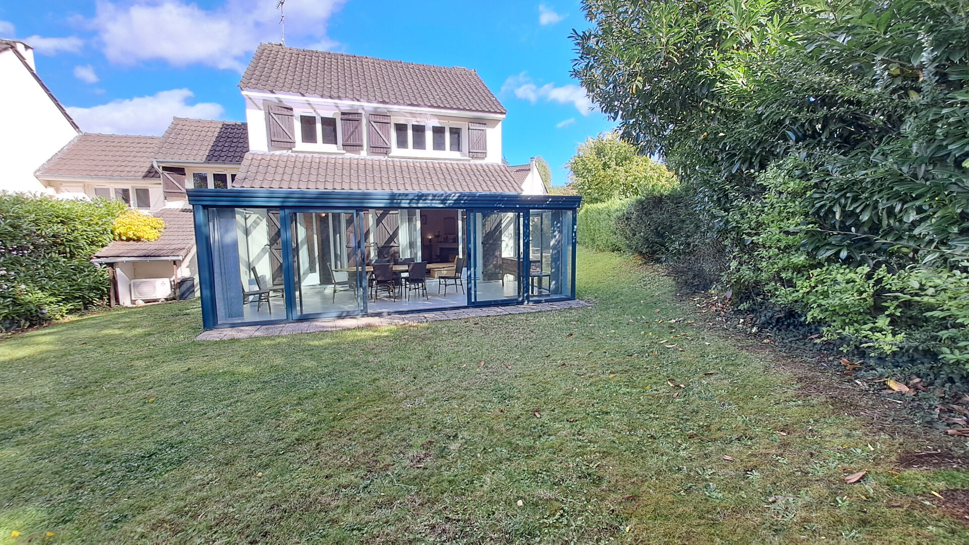 Dans résidence au calme et en impasse, maison mitoyenne par le garage comprenant: une entrée, une cuisine équipée indépendante, un salon avec une cheminée donnant sur une véranda de 23 m² équipée d'une pompe à chaleur, une chambre, une salle d'eau avec wc, Demi étage: une chambre, Etage: un palier desservant 2 chambres avec placards, une salle de bains wc, un dressing, En comble: un espace bureau, une pièce. Garage, un appentis, chaudière gaz à condensation de 2024 radiateurs de 2022, fenêtres doubles vitrage PVC véranda de 23 m² avec pompe à chaleur, cabanon de jardin , belle parcelle de terrain de 535 m² Centre ville et RER à 15 min à pied Copropriété de 105 lots (Pas de procédure en cours). Charges annuelles : 160 euros.