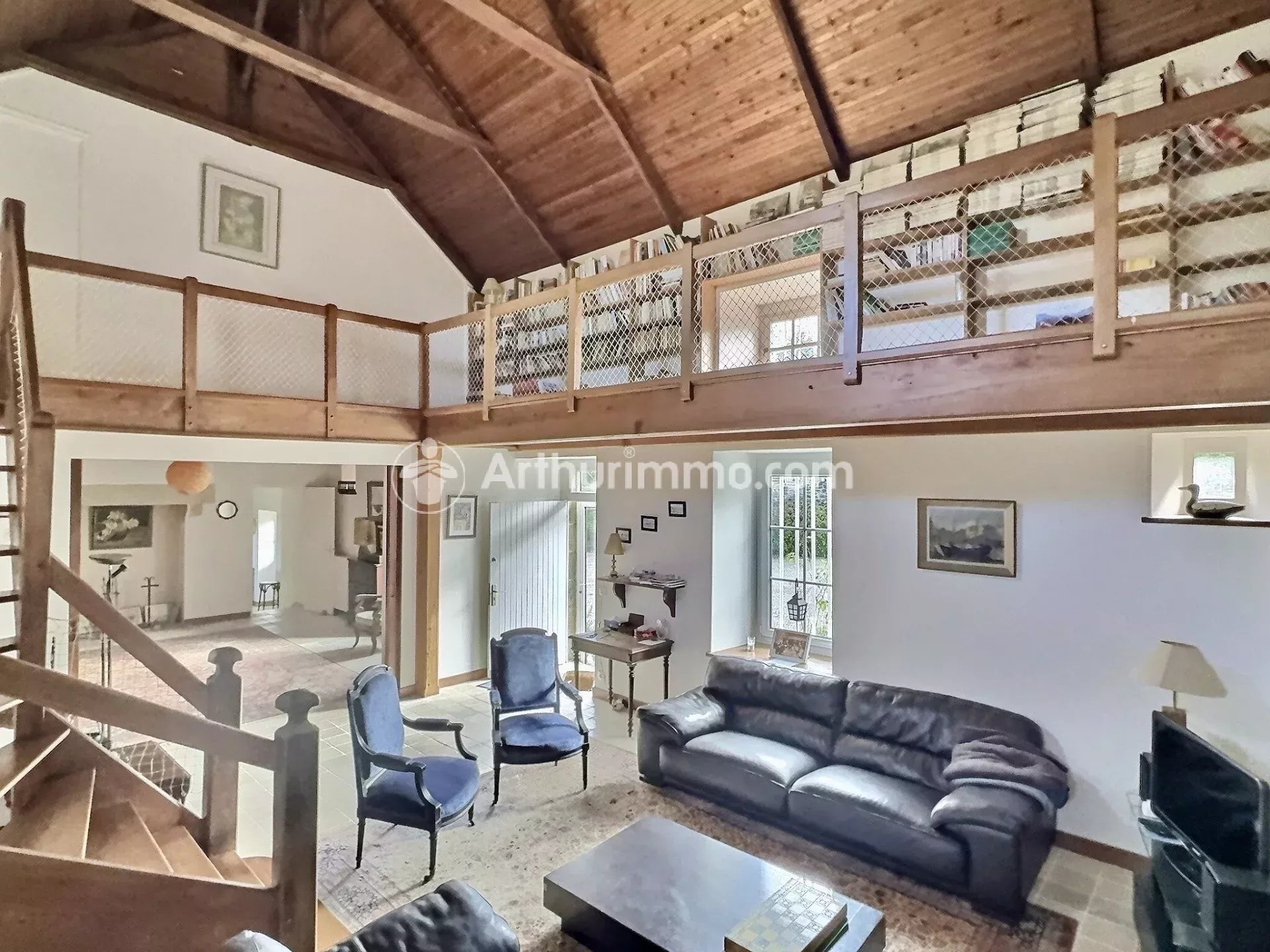 Édifiée sur un superbe terrain arboré de plus de 7 200 m², cette propriété indépendante d’environ 340 m² habitables séduit par ses volumes généreux, son authenticité préservée et le confort moderne qu’elle propose.