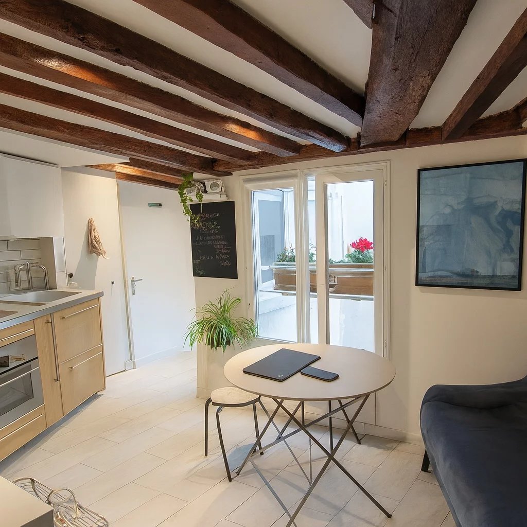 Dans un immeuble en pierre de taille, au 6ᵉ étage, se révèle un charmant DEUX PIÈCES en excellent état, donnant sur cour. Il se compose d’une entrée, d’une cuisine ouverte aménagée et équipée, d’un salon, d’une chambre et d’une salle d’eau avec WC. Les poutres d’origine apportent un véritable cachet et créent une ambiance chaleureuse. CALME - LUMINEUX et fonctionnel, l’appartement offre de nombreux rangements. Très bon rendement locatif : 3,76 %.