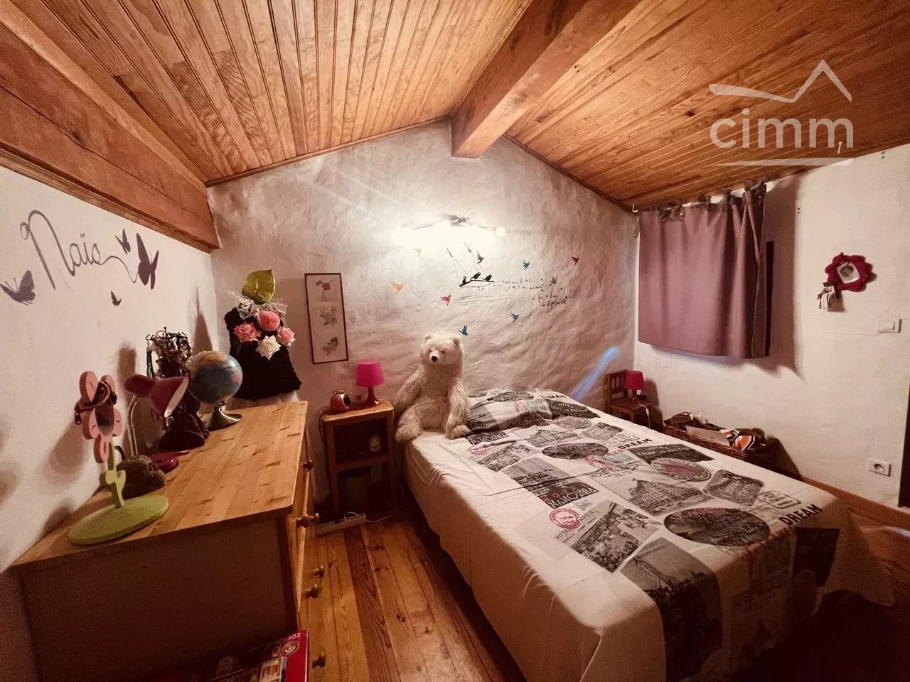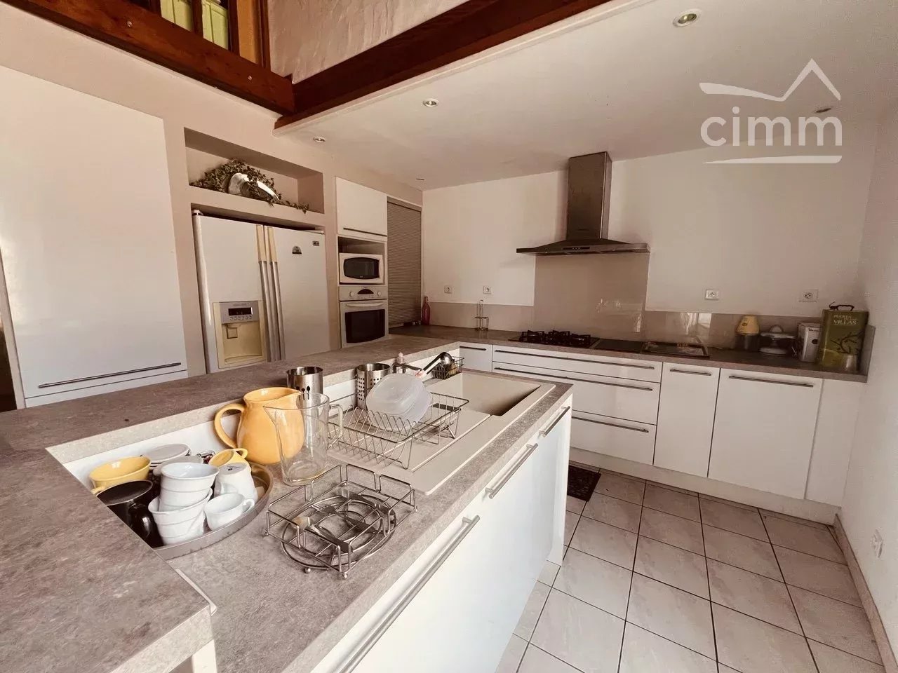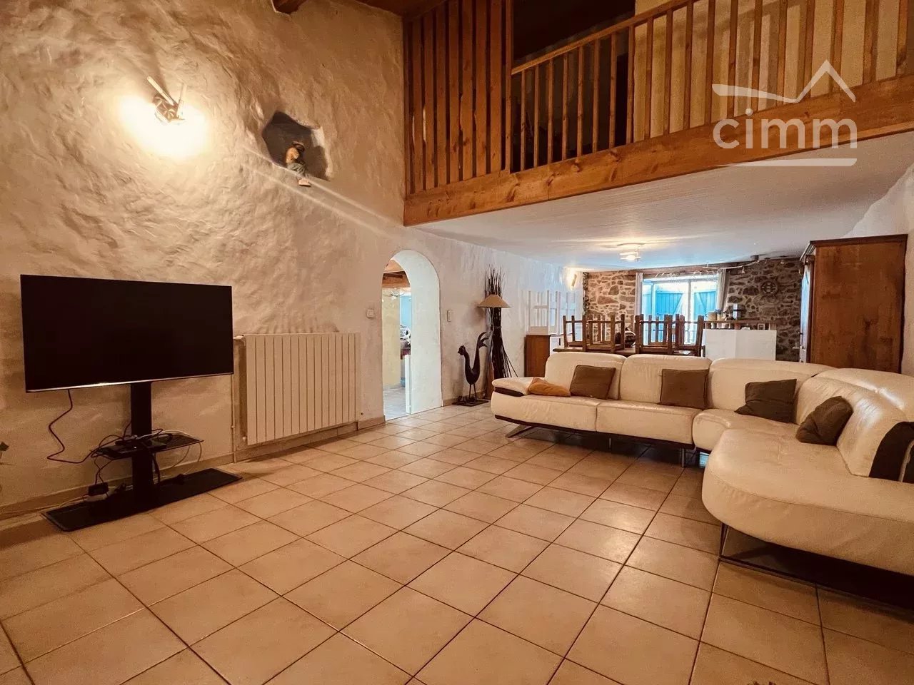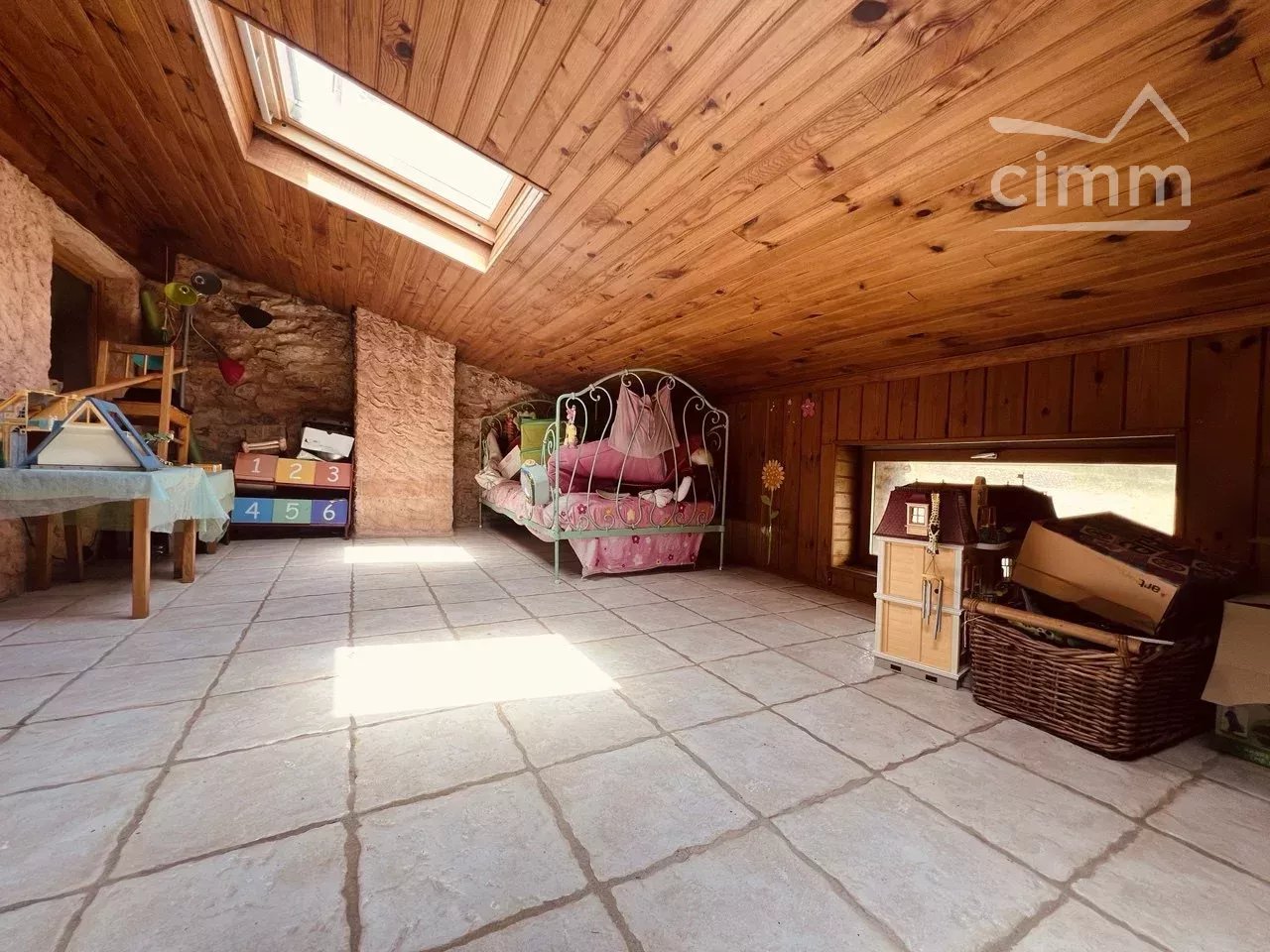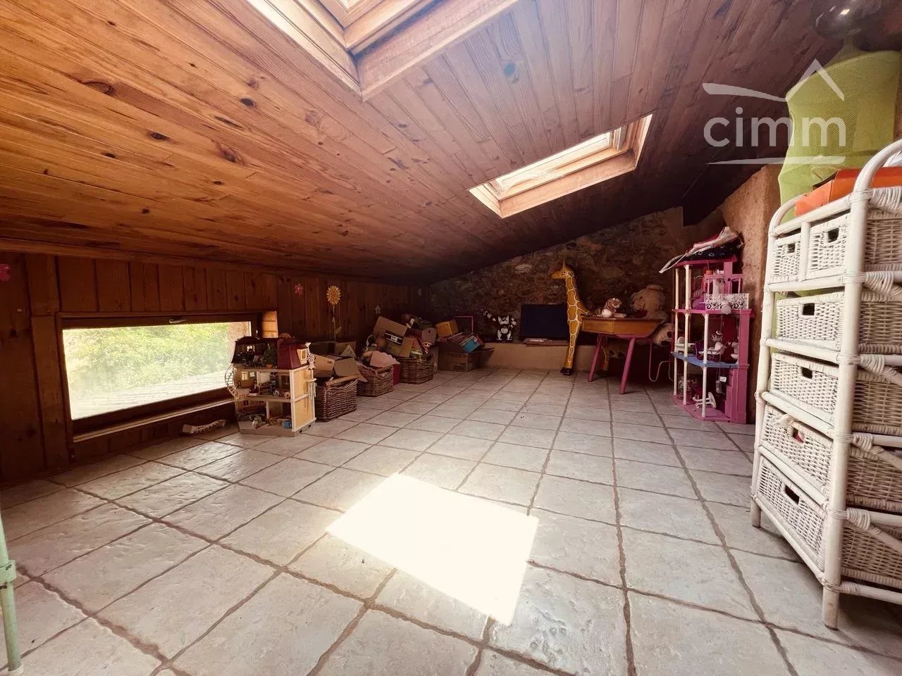 Face à l'entrée de la maison, vous accédez par un escalier aux pièces de vies de la maison. Vous arrivez sur une cuisine toute équipée et spacieuse de 21m2 avec îlot central. Cette cuisine semi ouverte donne sur un petit salon cosy au coin du feu avec un accès direct sur le jardin. Ce premier petit salon s'ouvre sur un second et spacieux salon haut sous plafond, mesurant plus de 45m2 avec d'un coté un accès petit bar et de l'autre un espace jaccuzi et douche. Une salle de bain avec baignoire, WC séparé et une chambre avec accès jardin complètent cette surface. Depuis la cuisine un second escalier vous mène à l'espace nuit avec 3 chambres: une chambre parentale de 17m2 avec dressing privatif en plus de ses grands placards intégrés, 2 chambres d'enfants et un espace salle de jeux supplémentaire.