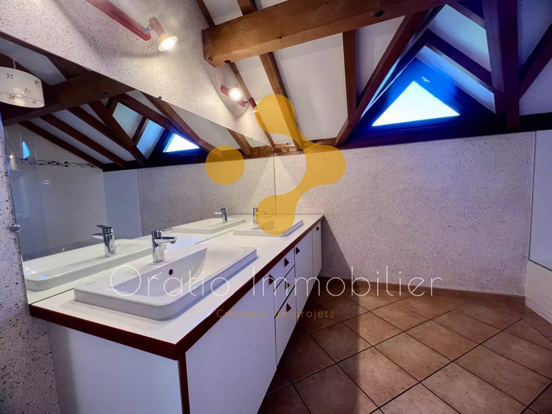 Découvrez cette magnifique maison en exclusivité, située dans un cadre calme, idyllique et ensoleillé, sur la commune prisée de La Balme-de-Sillingy. Édifiée sur un terrain arboré de 2 700 m², entièrement clôturé, piscinable et offrant une triple orientation sud, est et ouest, cette propriété est idéale pour une famille en quête de tranquillité à la campagne, tout en restant proche de toutes les commodités.