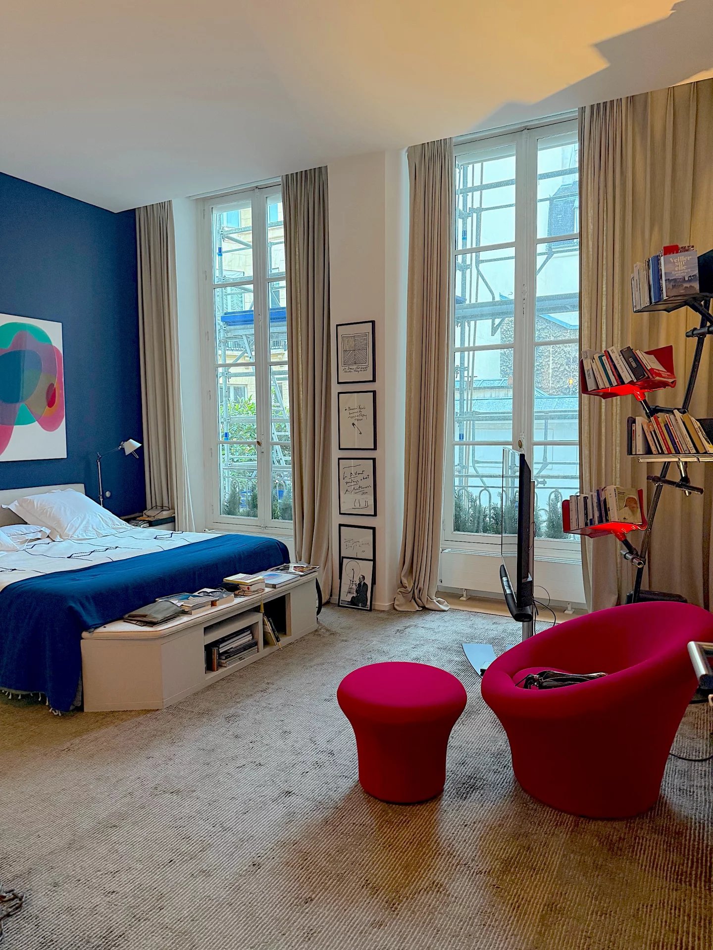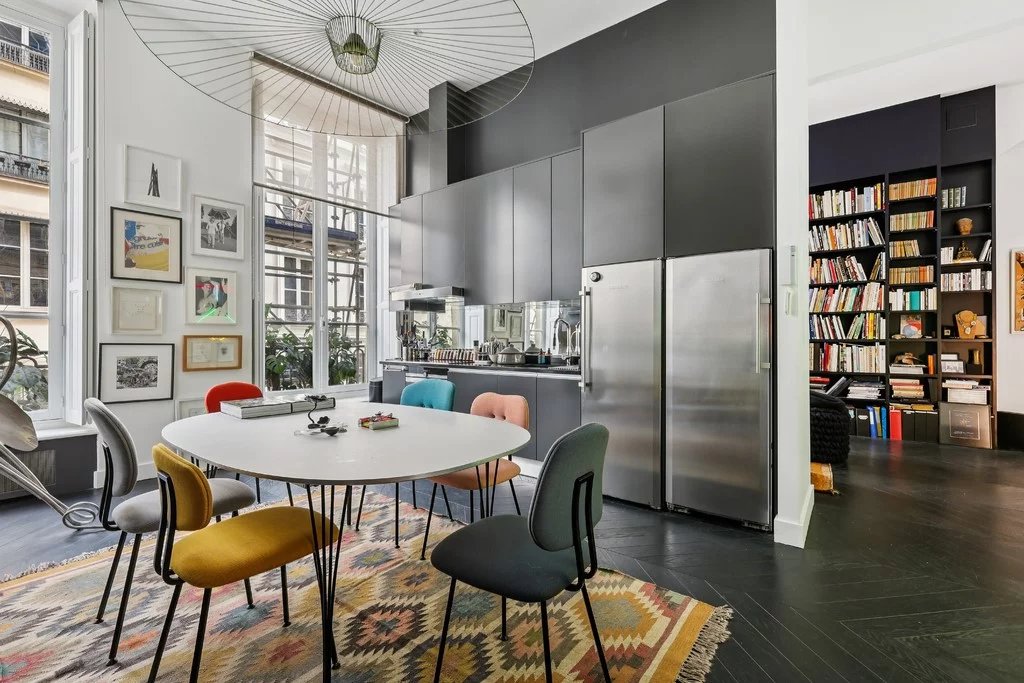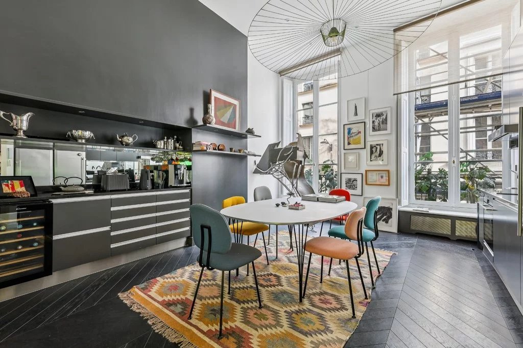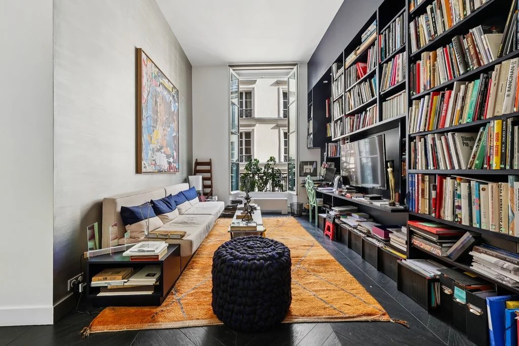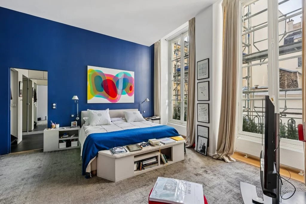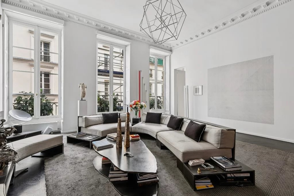 Jardin du Luxembourg, Saint Sulpice, Odéon, dans un magnifique immeuble du XVIIIe siècle, au 1er étage au-dessus de l'entresol avec ascenseur, sublime appartement de collectionneur exposé Est/Ouest. Il se compose d'une vaste galerie d'entrée, d'un salon aux volumes généreux avec cheminée, d'une bibliothèque (ou 3e chambre), d'une cuisine dînatoire, de 2 chambres dont une donnant sur jardin, de 3 salles de bains, et d'une cuisine d'appoint. Nombreux rangements en mezzanine. Hauteur sous plafond de 4 mètres.
