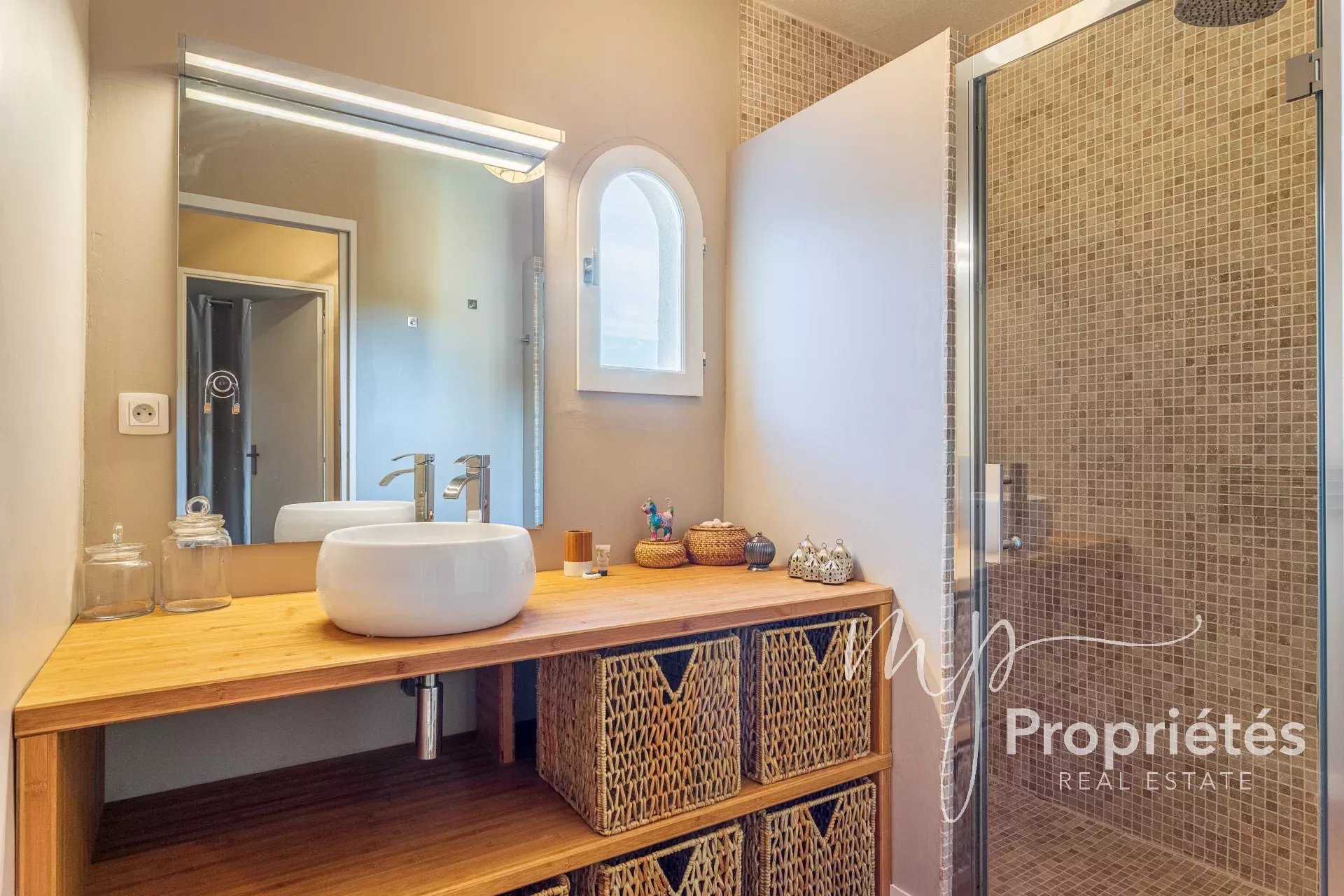 La partie nuit comprend une chambre, une salle d’eau avec douche à l’italienne récemment rénovée, ainsi qu’un WC séparé.