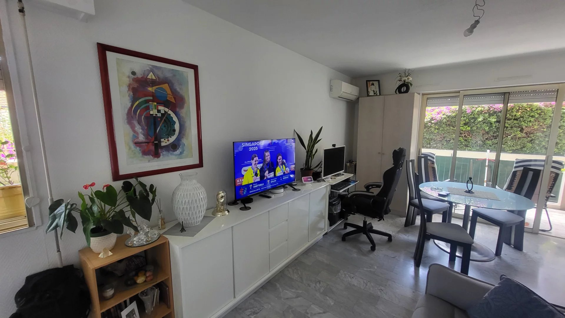 Baisse de Prix _ Investisseur ou 1er achat: Grand T1 lumineux avec espace nuit séparable en chambre avec fenêtre, terrasse, expo ouest, cuisine avec extension sur petite véranda, volume principal spacieux, hall, salle de douche et WC séparés, hall. Situé au premier étage coté rue dans la résidence la plus recherchée de Golfe Juan, avec parking en sous-sol et cave, ce grand T1 d'angle exposé Sud et Ouest, a une terrasse confortable de 12m2, climatisé, Idéal investisseur ou première acquisition