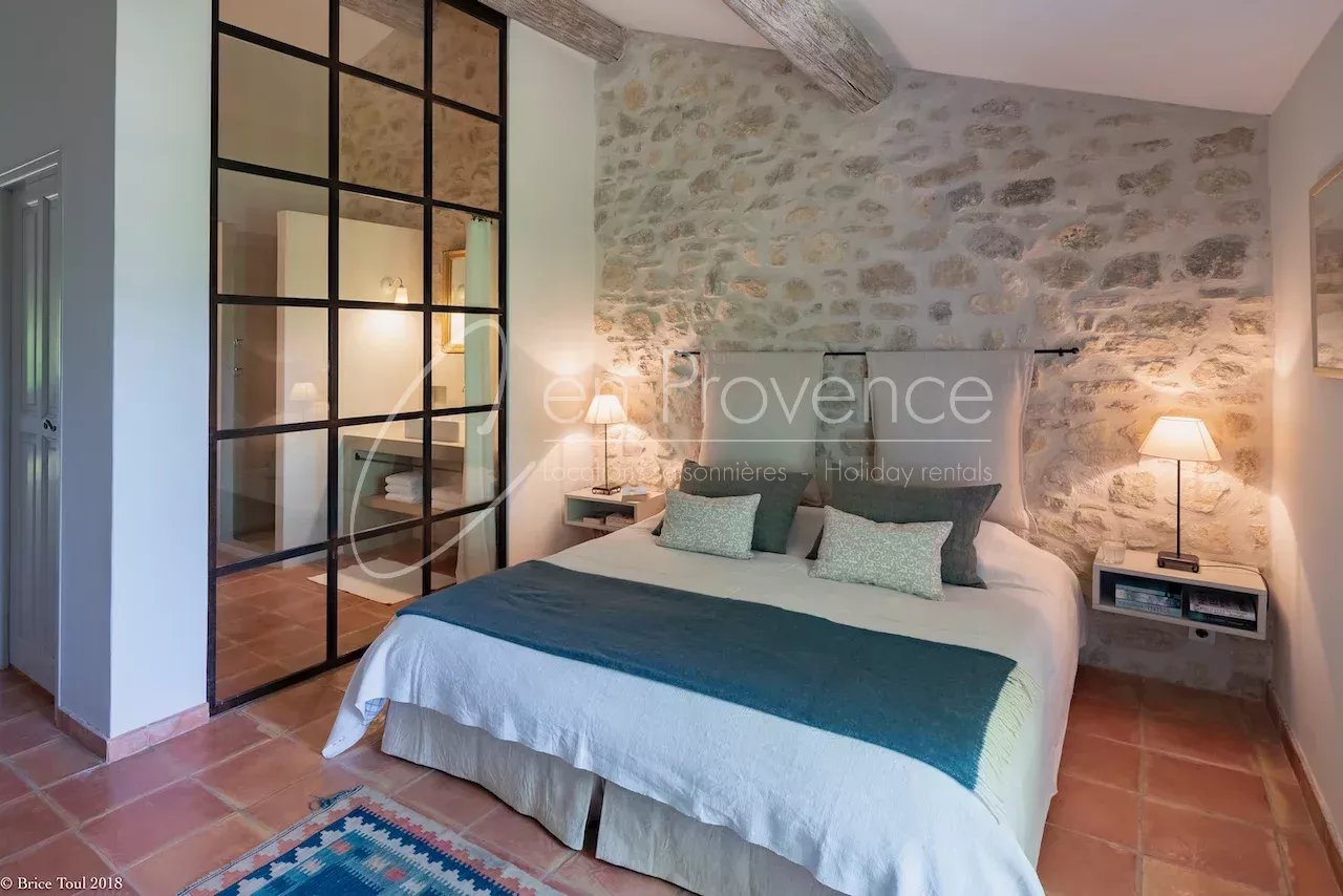 Découvrez le charme authentique de la Provence dans ce superbe mas provençal à louer à Goult, offrant une vue imprenable sur le Luberon pouvant accueillir seize personnes dans six chambres en suite climatisées. A 10 minutes à pied du village, à proximité des villages de Gordes, Roussillon et Bonnieux, avec une piscine à débordement et de magnifiques prestations intérieures, cette location de vacances au coeur du Luberon est parfaite pour un séjour à la découverte du Luberon. 6 chambres climatisées - 7 salles de bains - 16 personnes - Goult - village à pied - piscine à débordement avec vue sur la vallée du Luberon