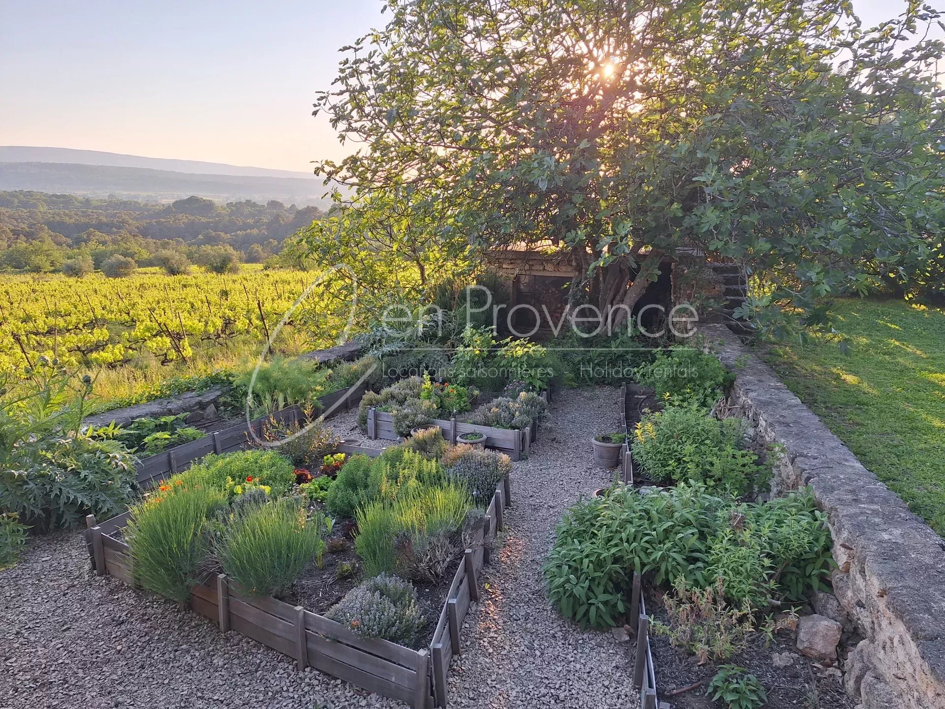 Le mas est implanté sur un terrain d’un hectare offrant calme absolu, nature et sérénité, entre Apt et Bonnieux au coeur du Luberon.