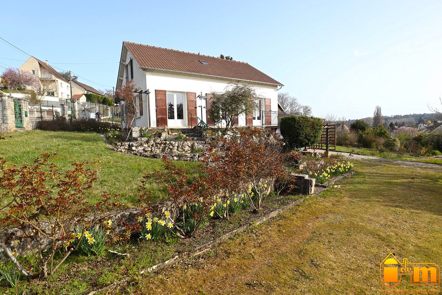 A 15 mn au sud dÉtampes (RER C), Vallée de la Juine, centre village de Méréville, tous commerces et écoles (Maternelles, primaires et collège), sur une parcelle de 1.000 m² enclose grillagée et arborée.