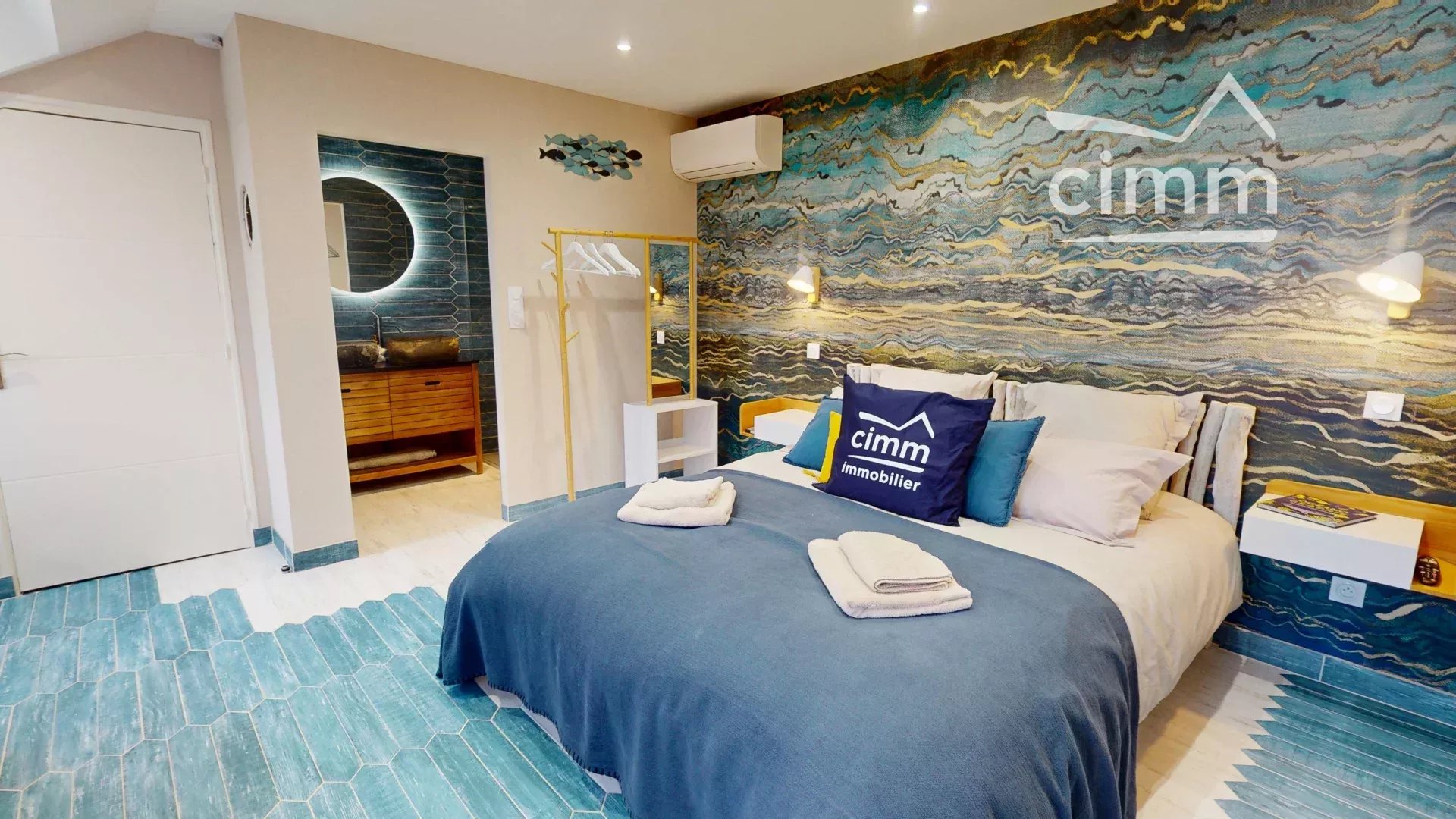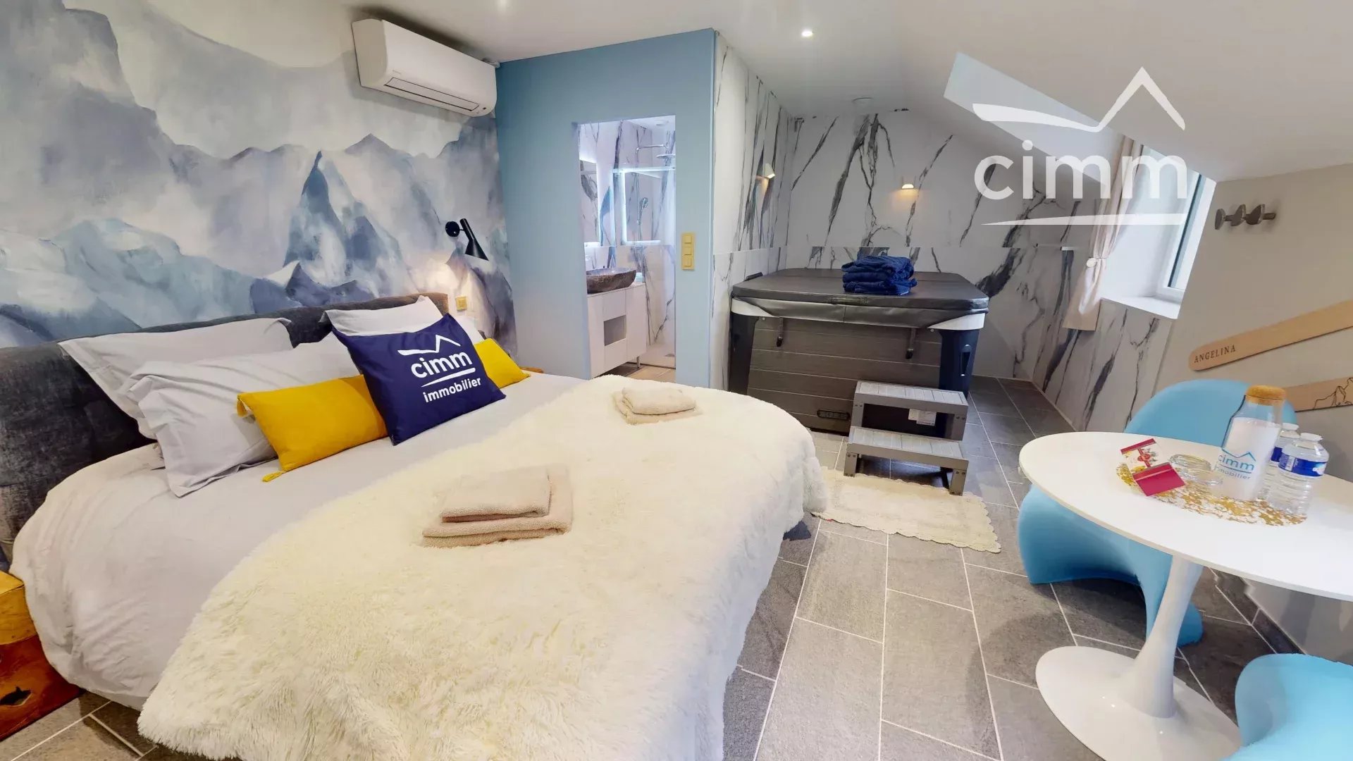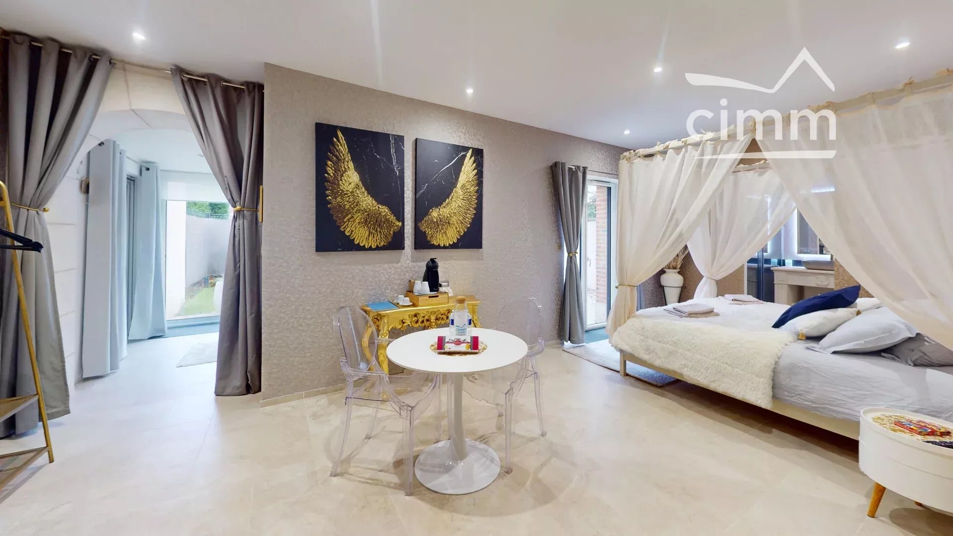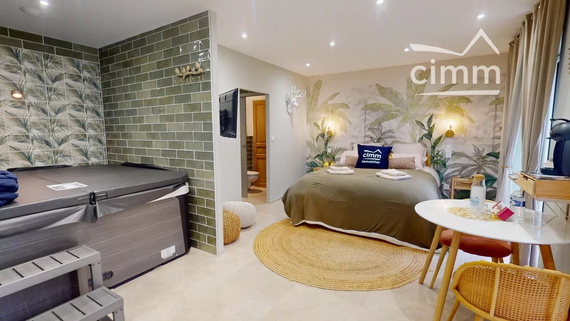 La partie dédiée aux 4 chambres d’hôtes, totalement indépendante de l’espace privatif, permet d’accueillir les voyageurs dans un confort absolu. Chaque suite bénéficie d’un aménagement soigné, d’une décoration contemporaine et chaleureuse, ainsi que d’un spa privatif, garantissant une expérience bien-être unique. Les espaces sont lumineux, parfaitement entretenus et décorés avec goût, proposant une ambiance intime et de haut standing.