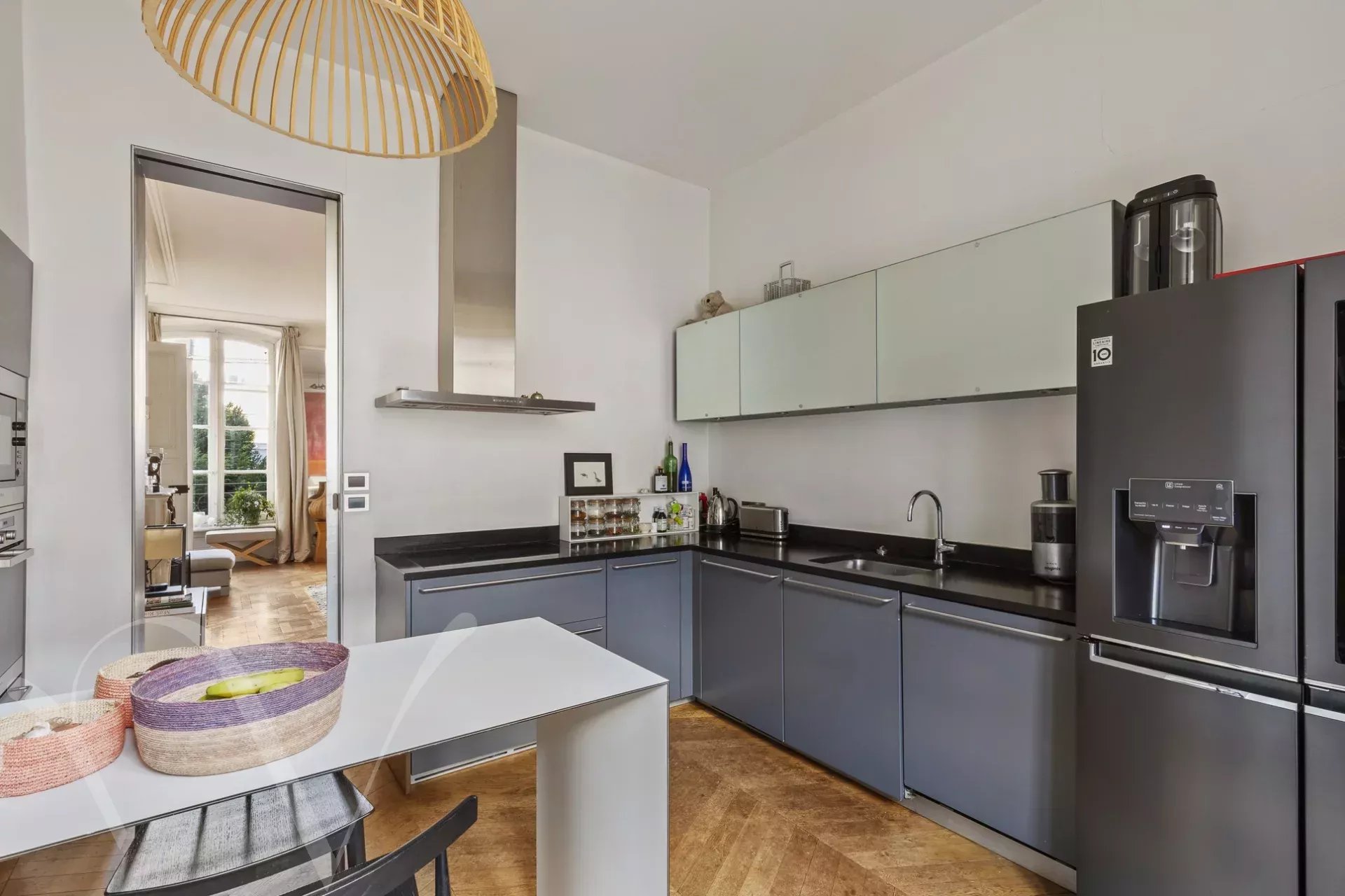 Off market, dans un ancien hôtel particulier du XVIIIe siècle avec ascenseur, appartement de 180 m²loi Carrez, traversant entre la cour d'honneur et les jardins. Situé au deuxième étage, il bénéficie d'une très belle hauteur sous plafond de 3,30 m. L'appartement se compose d'une élégante entrée qui dessert une salle à manger et un salon donnant sur les jardins, un bureau, ainsi que la suite principale avec son dressing, sa grande salle de douche et ses toilettes. en face de la réception une grande cuisine aménagée, et deux chambres sur la cour d'honneur se partagent une salle de bains. Une superbe cave voûtée de 25 m², un emplacement de parking dans la cour, et une petite chambre de service complètent ce superbe lieu.