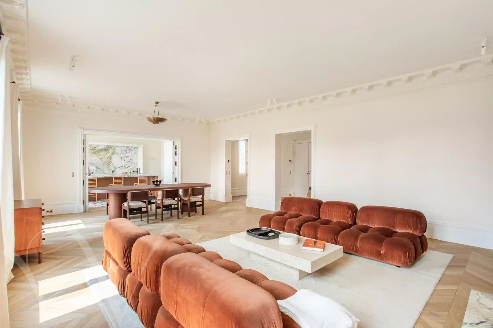 Situé au cœur de Saint-Germain-des-Prés, à proximité de nombreux commerces, restaurants et de sa vie culturelle, dans un magnifique immeuble en pierre de taille avec ascenseur, cet appartement de 183 m² loi Carrez au 5e étage est entouré de balcons offrant des vues panoramiques. Il se compose d'une entrée desservant un salon, une salle à manger avec une belle cuisine superbement aménagée, et trois belles chambres, chacune avec sa salle de bains complète. Superbe pied-à-terre avec des prestations très haut de gamme.