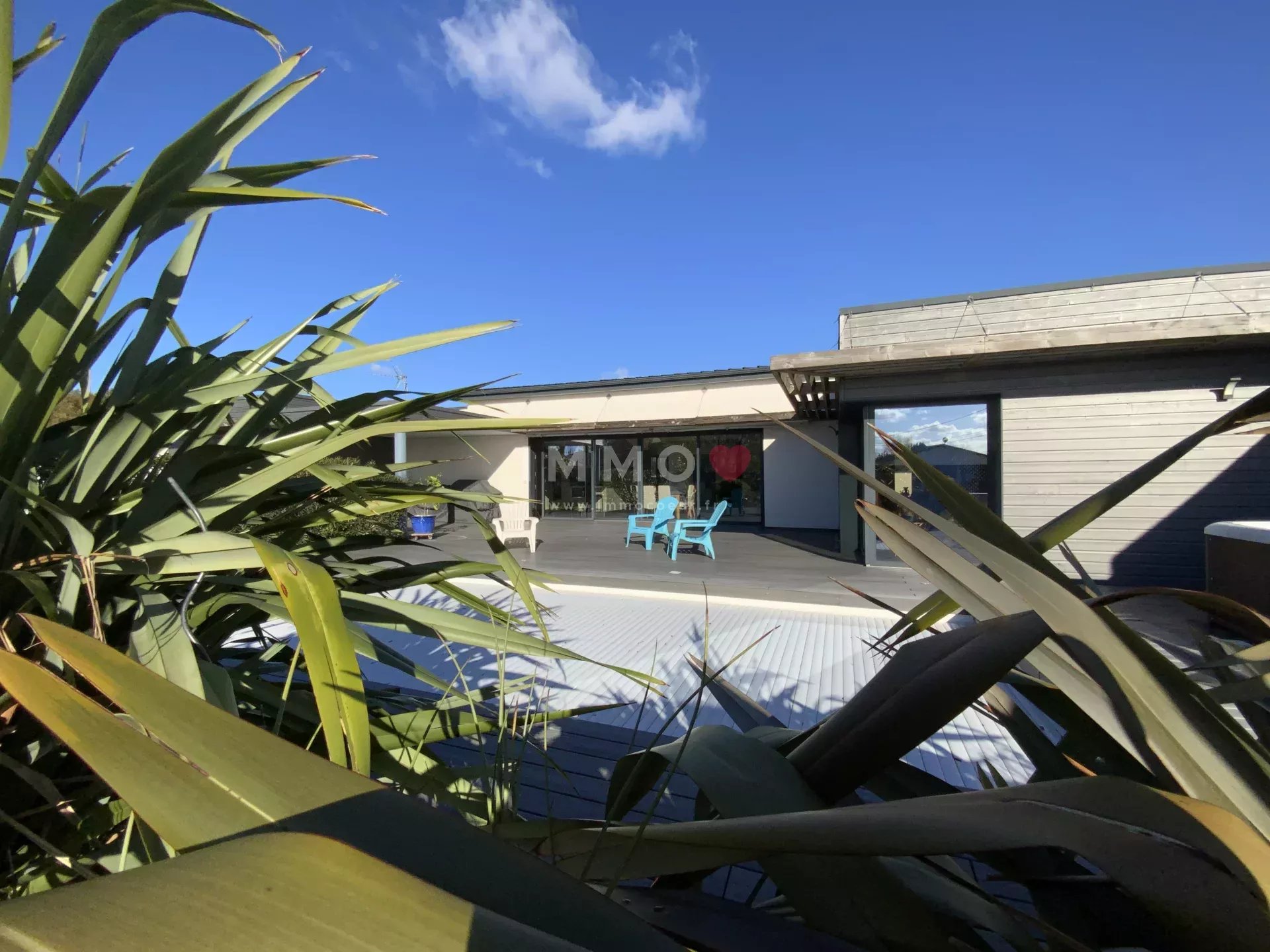 Le terrain de 1 249 m², entièrement paysager, accueille une superbe piscine sécurisée par rideau, une grande terrasse en bois et un terrain de pétanque idéal pour les moments conviviaux.