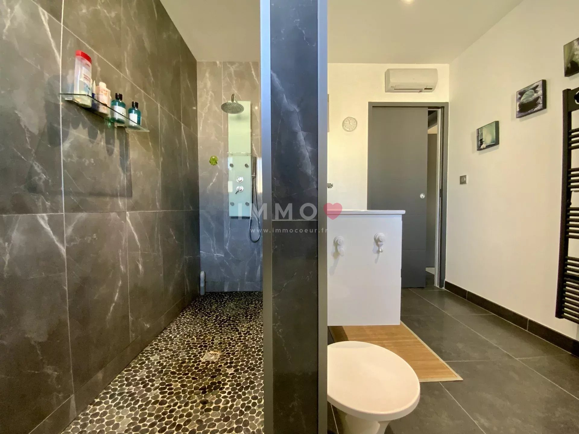 Une salle de bain avec douche, une salle d’eau, ainsi qu’un grand dressing complètent parfaitement l’ensemble. La maison bénéficie de nombreux rangements intelligemment répartis, gage d’un confort au quotidien.