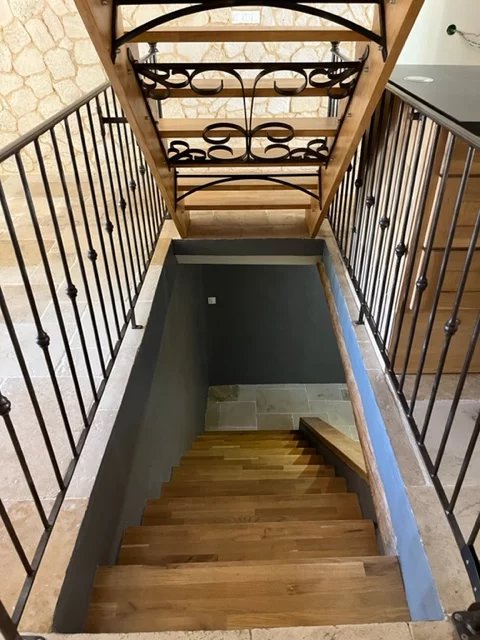 Jouques Jolie Maison de village de 99,60m² habitables en triplex idéalement placée, écoles, commerces et bus à pieds, excellent état, traversante exposée Sud comprenant hall d'entrée, buanderie, cuisine équipée sur spacieuse pièce de vie avec