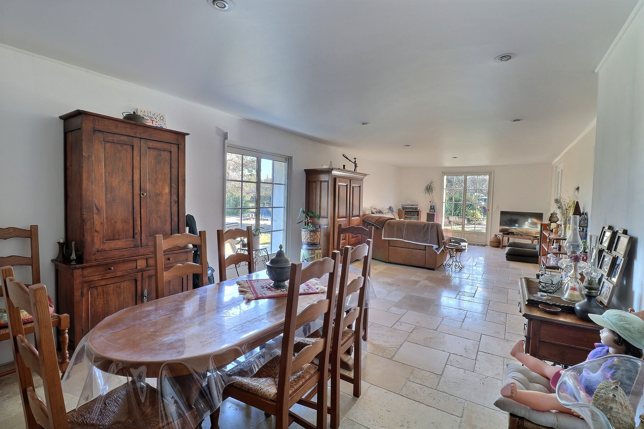 Maison de 180 m2 habitables sur plus 6000 m2 de terrain plat, cloturé et arboré + piscine. Comprenant au rez de chaussée : vaste hall d'entrée, séjour de 48 m2, cellier, cuisine équipée récente + espace repas et au 1er étage : quatre chambres, espace bureau, salle d'eau de 11 m2, terrasse solarium. Chaufferie et dépendance. Pompe à chaleur + panneaux solaires .