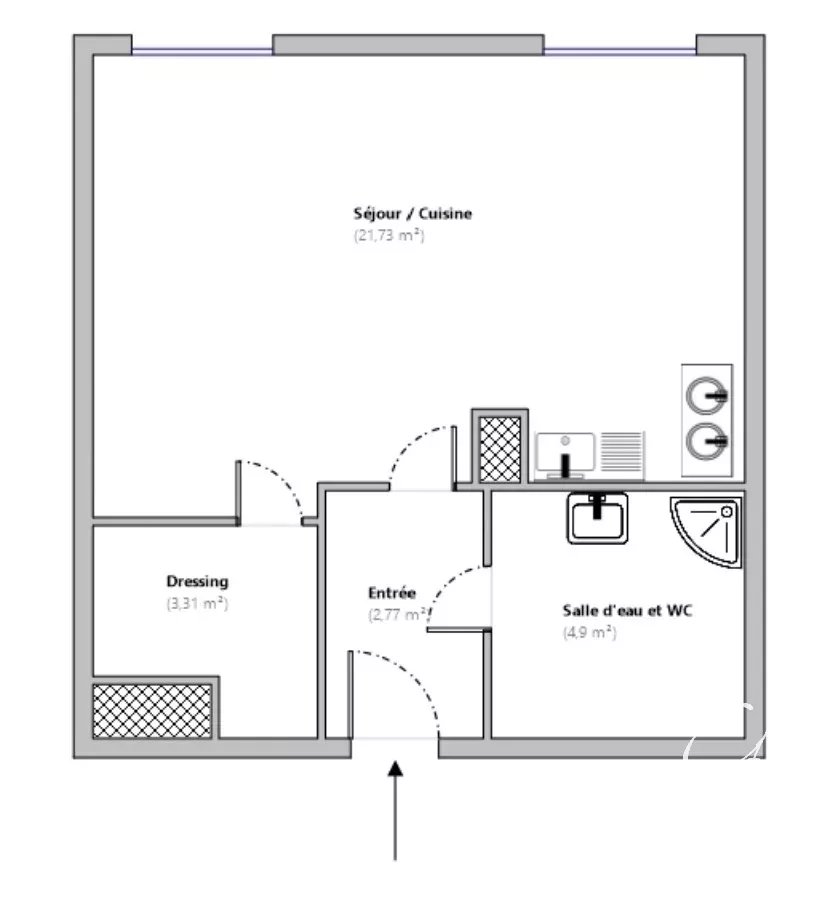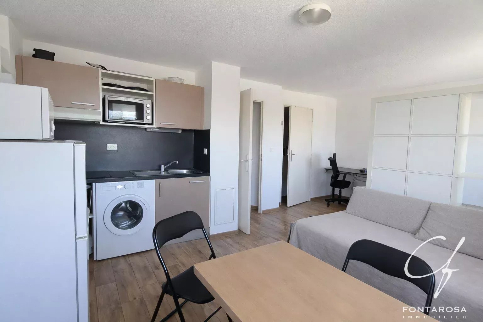 Il se compose d’une entrée, d’une pièce de vie lumineuse avec cuisine équipée, d’un grand dressing, ainsi que d’une salle d’eau avec WC. Le bien est vendu meublé.