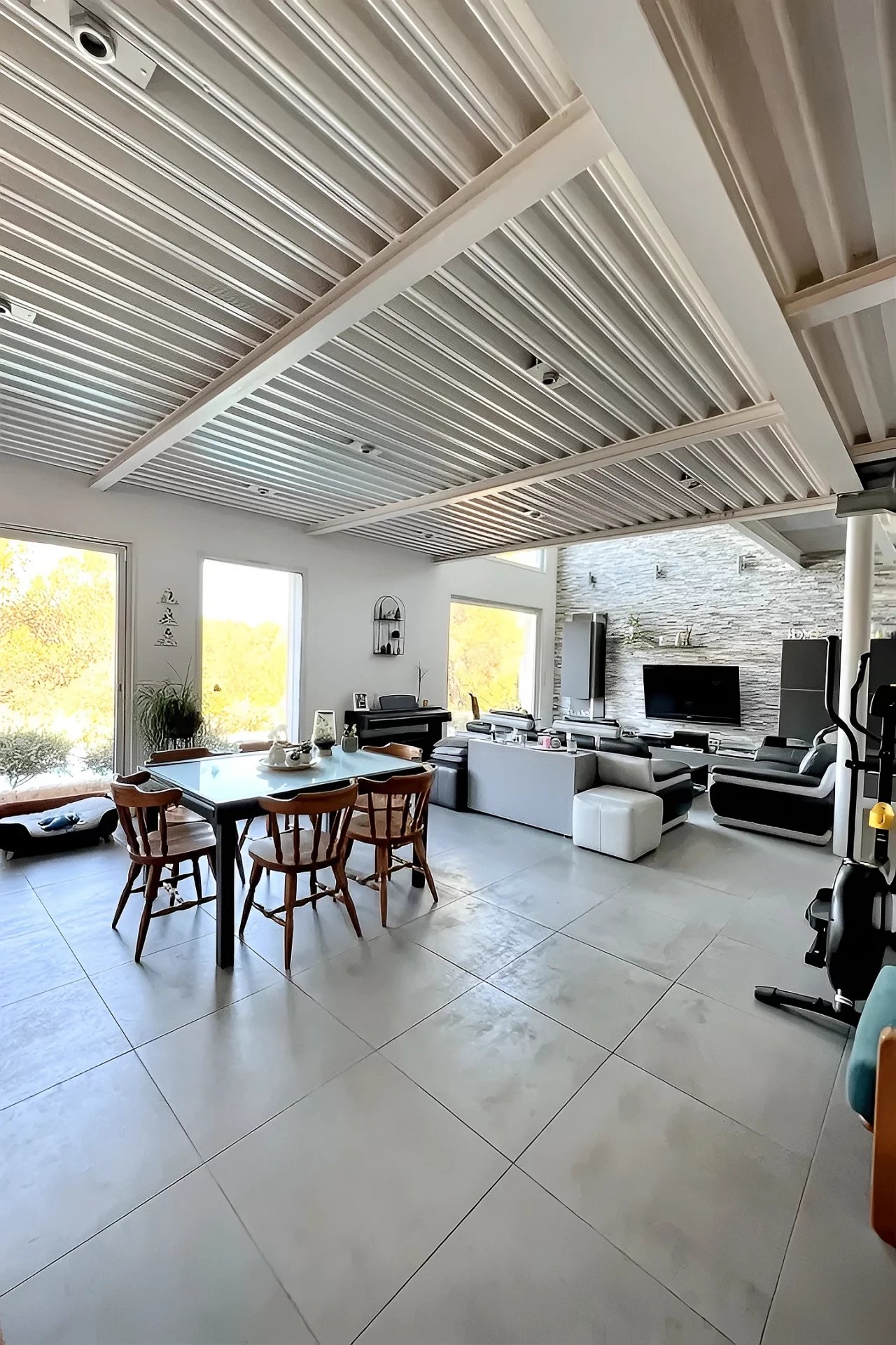 Dès l’entrée, le ton est donné avec un vaste séjour de près de 70 m², baigné de lumière ; il constitue le cœur de la maison. Il s’ouvre sur une cuisine moderne et conviviale, idéale pour les moments de partage.