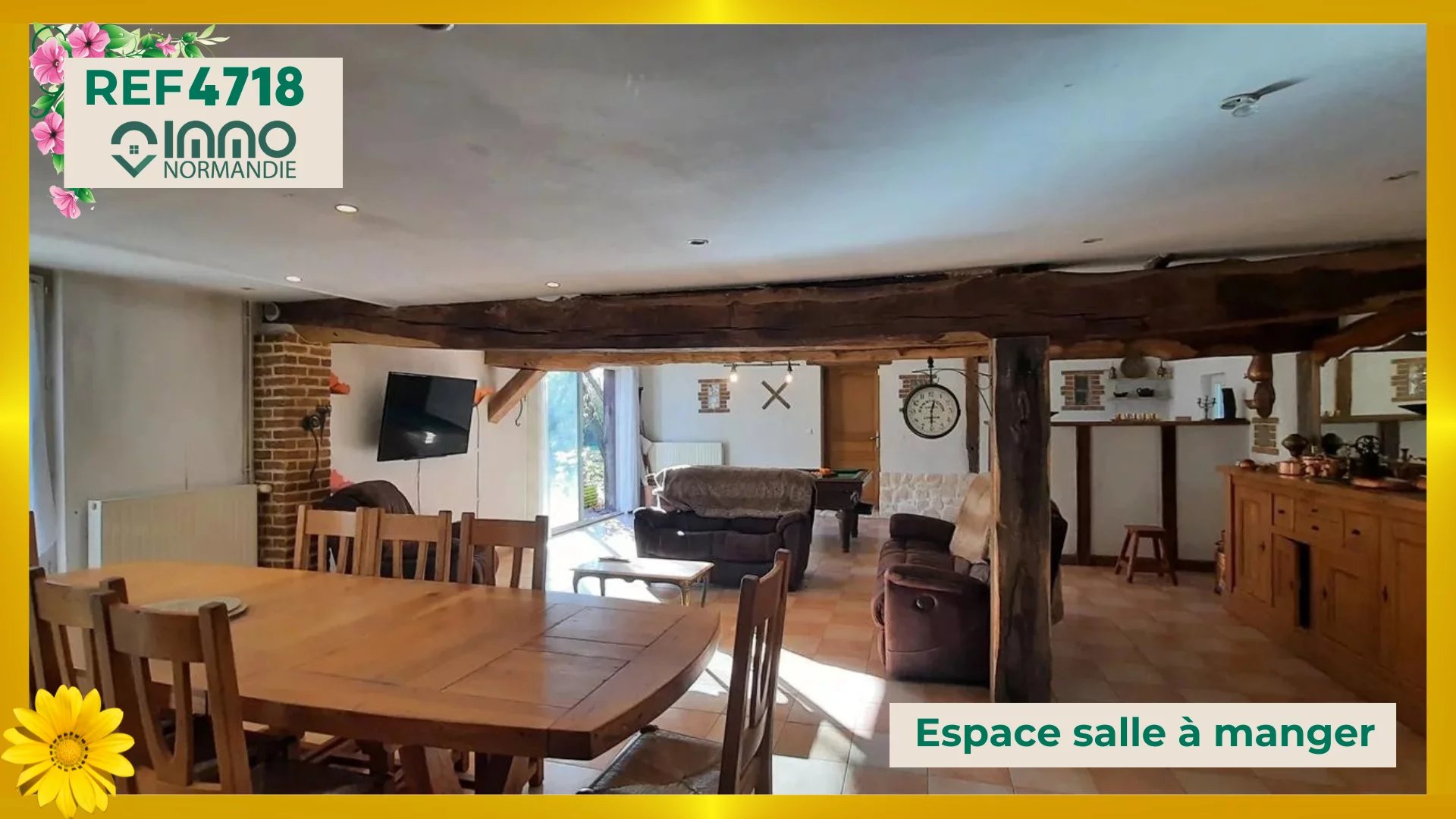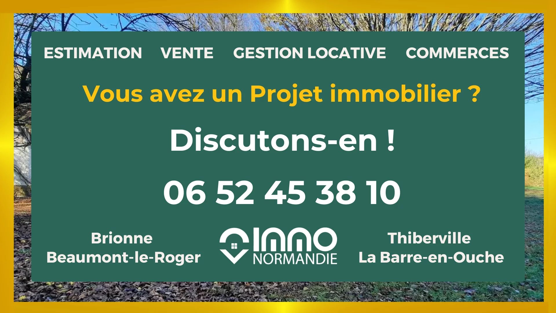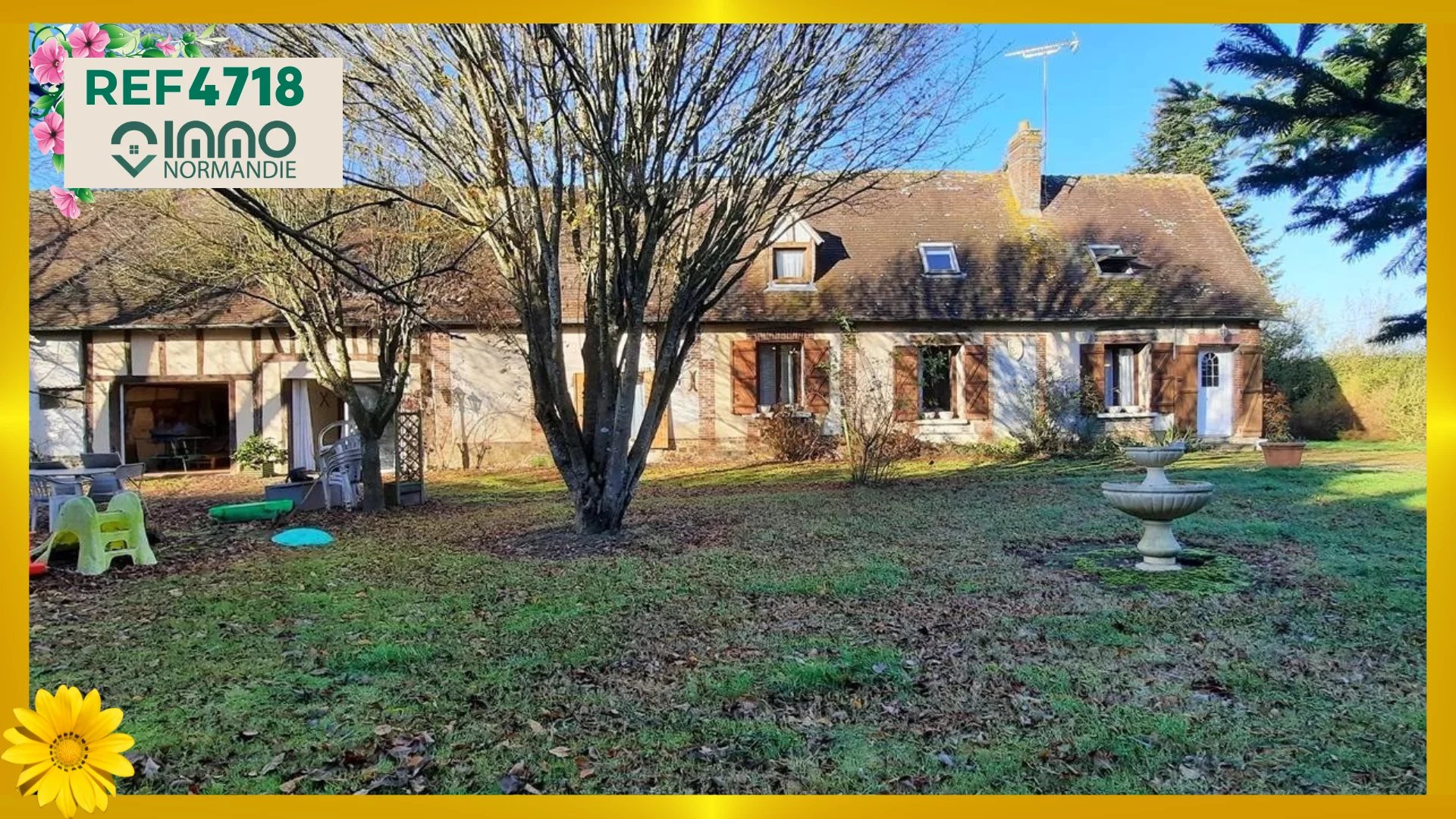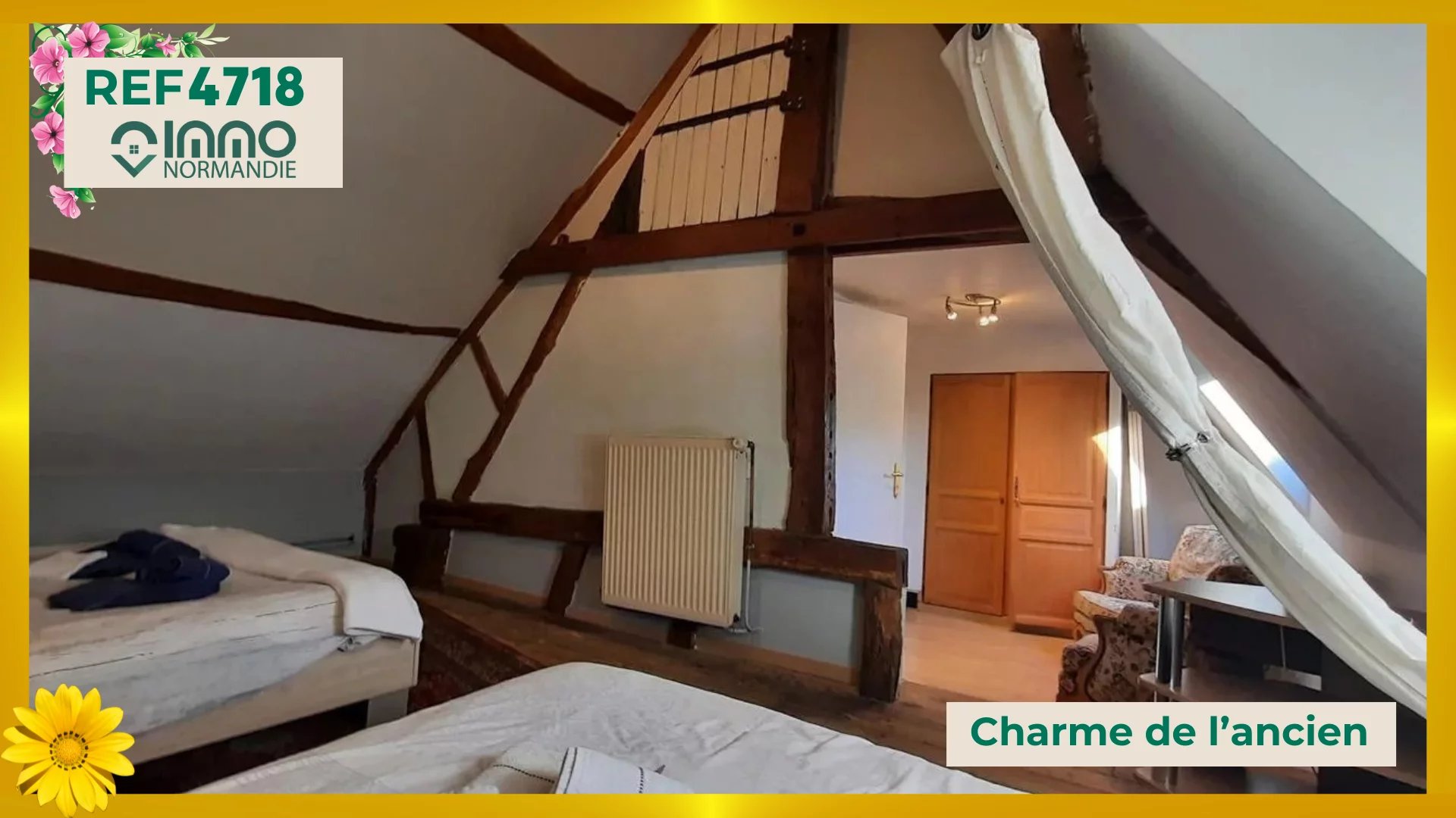 En campagne - Au calme - Sans vis-à-vis - A 3 minutes des Commerces - Ecoles - Services - L'Agence IMMO NORMANDIE vous propose cette maison de pays aux beaux volumes, comprenant : AU REZ DE CHAUSSÉE : - Lumineuse Pièce de vie de 66 m² ; - Cuisine aménagée et équipée semi ouverte ; - Grand bureau avec cheminée insert ; - 2 chambres indépendantes ; - Spacieuse Salle de bains et douche ; - Toilettes séparées ; A L'ÉTAGE : - Palier desservant : - 2 grandes chambres avec placards ; - 1 cabinet de toilettes (WC + lave-mains) ; A L'EXTÉRIEUR : - Accolés à la maison : - Garage ; - Ancienne écurie ; - Atelier ; - BEAU TERRAIN DE 4000 m² CLOS ET ARBORÉ - Portail motorisé. Agence IMMO NORMANDIE 4 agences Pour vous accompagner dans votre Projet Immobilier -- LA BARRE EN OUCHE -- BEAUMONT LE ROGER -- -- BRIONNE -- THIBERVILLE -- Retrouvez toutes nos annonces et vidéos sur notre site www.immonormandie.fr Contact : Benjamin ROMUALD -06.33.72.85.24- entrepreneur individuel (E.I.) agissant en sa qualité d'agent commercial, inscrit au Registre Spécial des Agents Commerciaux sous le numéro RSAC 812 264 455 00013