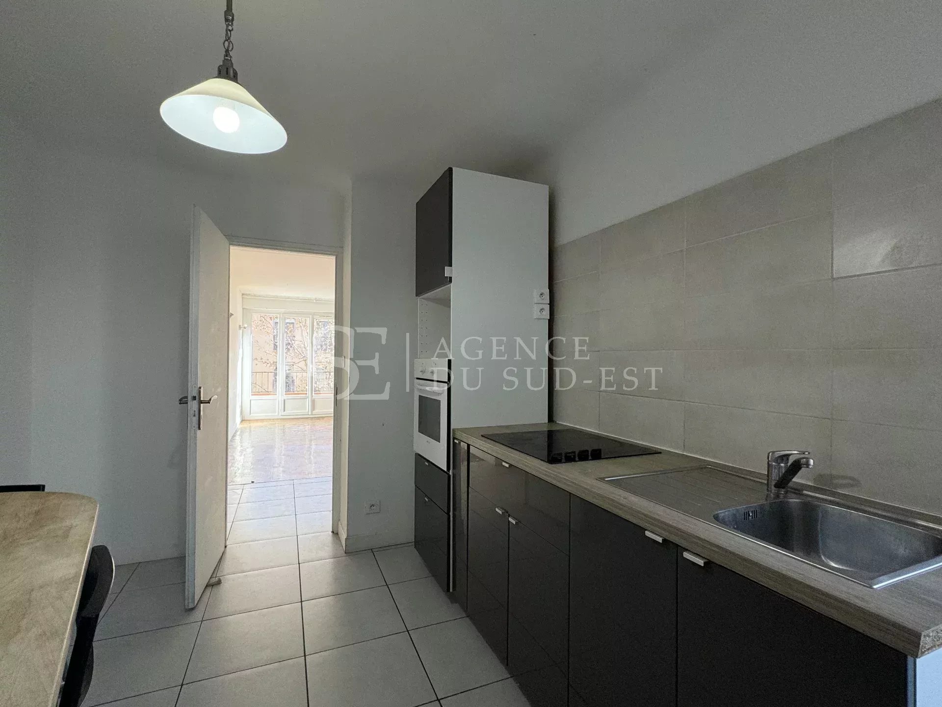 Appartement de type 4 de presque 80 m² avec garage, idéalement placé ! Comprenant: un hall d'entrée, un séjour donnant sur petit balcon, une cuisine séparée avec buanderie, 3 chambres, une salle d'eau et wc séparés.