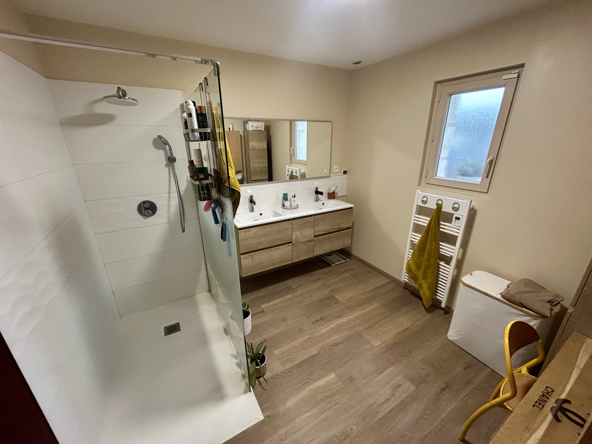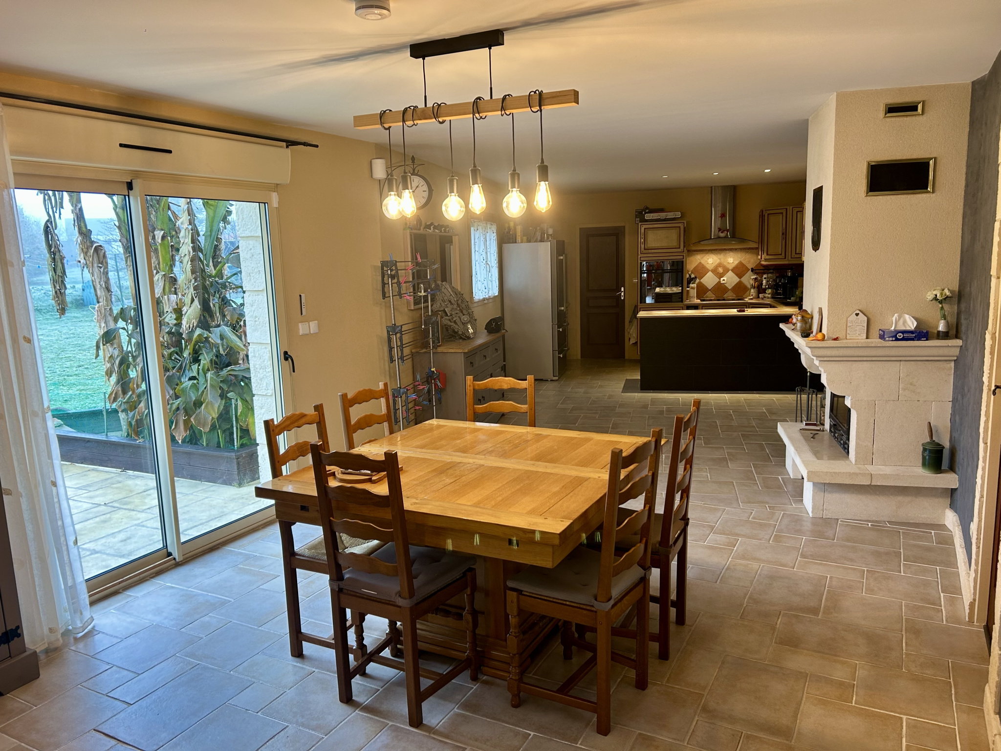 Cette maison, située dans un environnement calme et verdoyant, offre de beaux volumes et un grand confort. Elle comprend un séjour lumineux avec cheminée, une cuisine équipée, 5 chambres dont 3 de plain-pied, une salle d'eau, deux WC, un cellier et un garage. Le chauffage au sol au rez-de-chaussée et la climatisation à l'étage assurent un confort optimal. Le terrain clos de 1 396 m2 est idéal pour profiter de l'extérieur. Soigneusement agencée et sans travaux à prévoir, la maison est parfaitement adaptée à une vie familiale paisible.