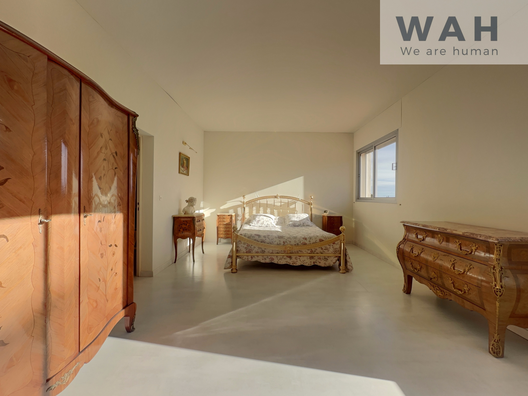 Le rez-de-chaussée s'ouvre sur un hall d'entrée desservant une pièce de vie lumineuse d'environ 60 m2, dotée d'une cheminée, et une cuisine indépendante de 23 m2. L'espace nuit de plain-pied comprend deux chambres et une salle de bains. À l'étage, vous profiterez de deux chambres supplémentaires, dont une suite parentale de 46 m2 avec solarium privatif.